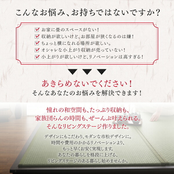 リビング収納 チェスト キャビネット タンス テレビ台 日本製 収納付きデザイン畳リビングステージ 畳ボックス収納 60×120cm ロータイプ