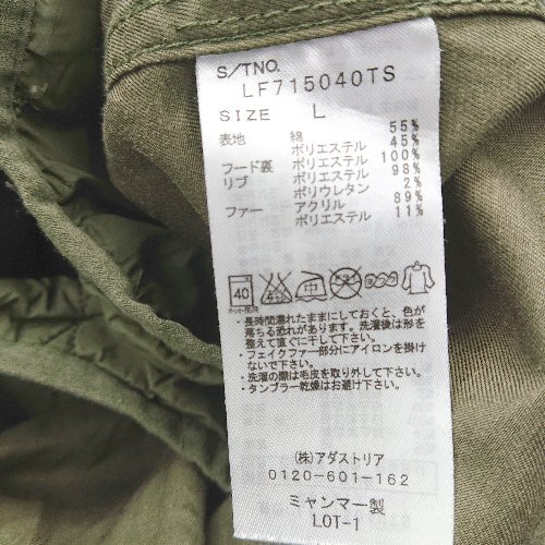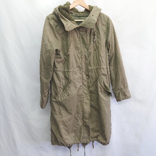 ■ ⊇ LOWRYS FARM ローリーズファーム 中綿キルトライナー取外し可能 長袖 モッズコート サイズL カーキ レディース E