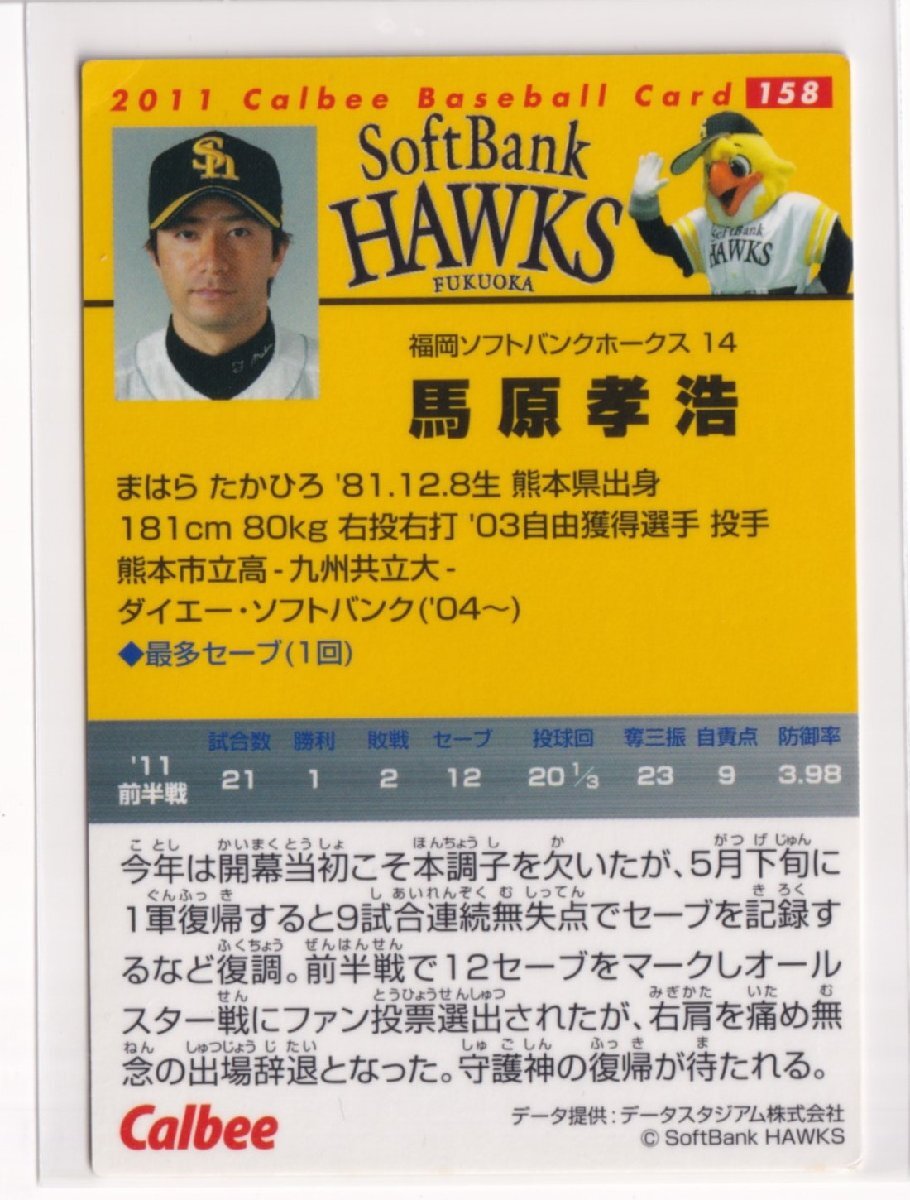 2011プロ野球チップス第3弾 158 馬原孝浩(ソフトバンク)