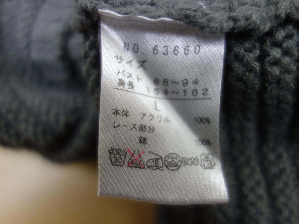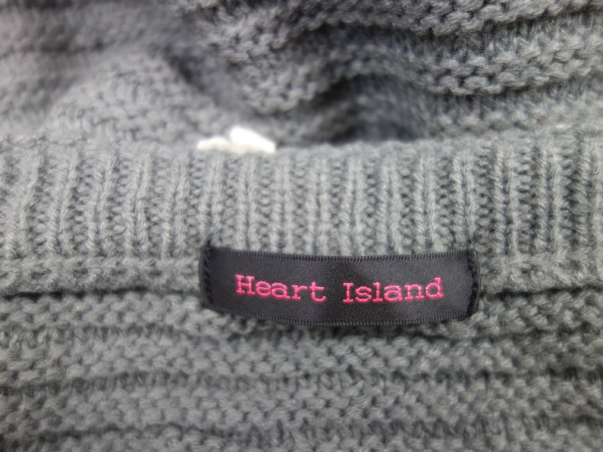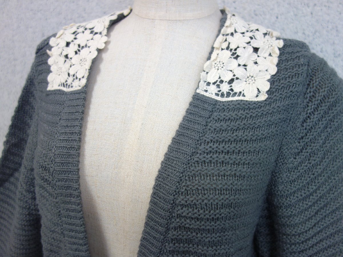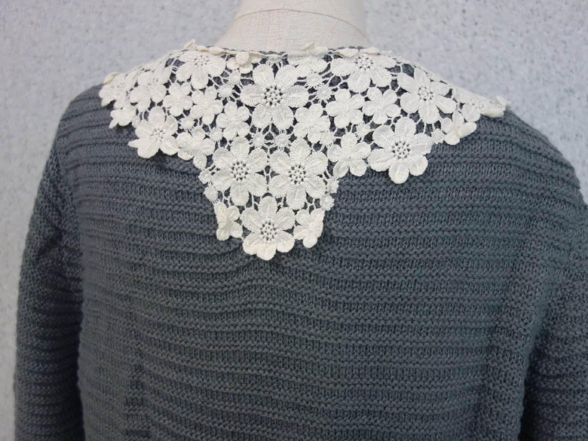 レディース Heart Island 長袖 ニット セーター チュニック ロング カーディガン 襟レース サイズL グレー