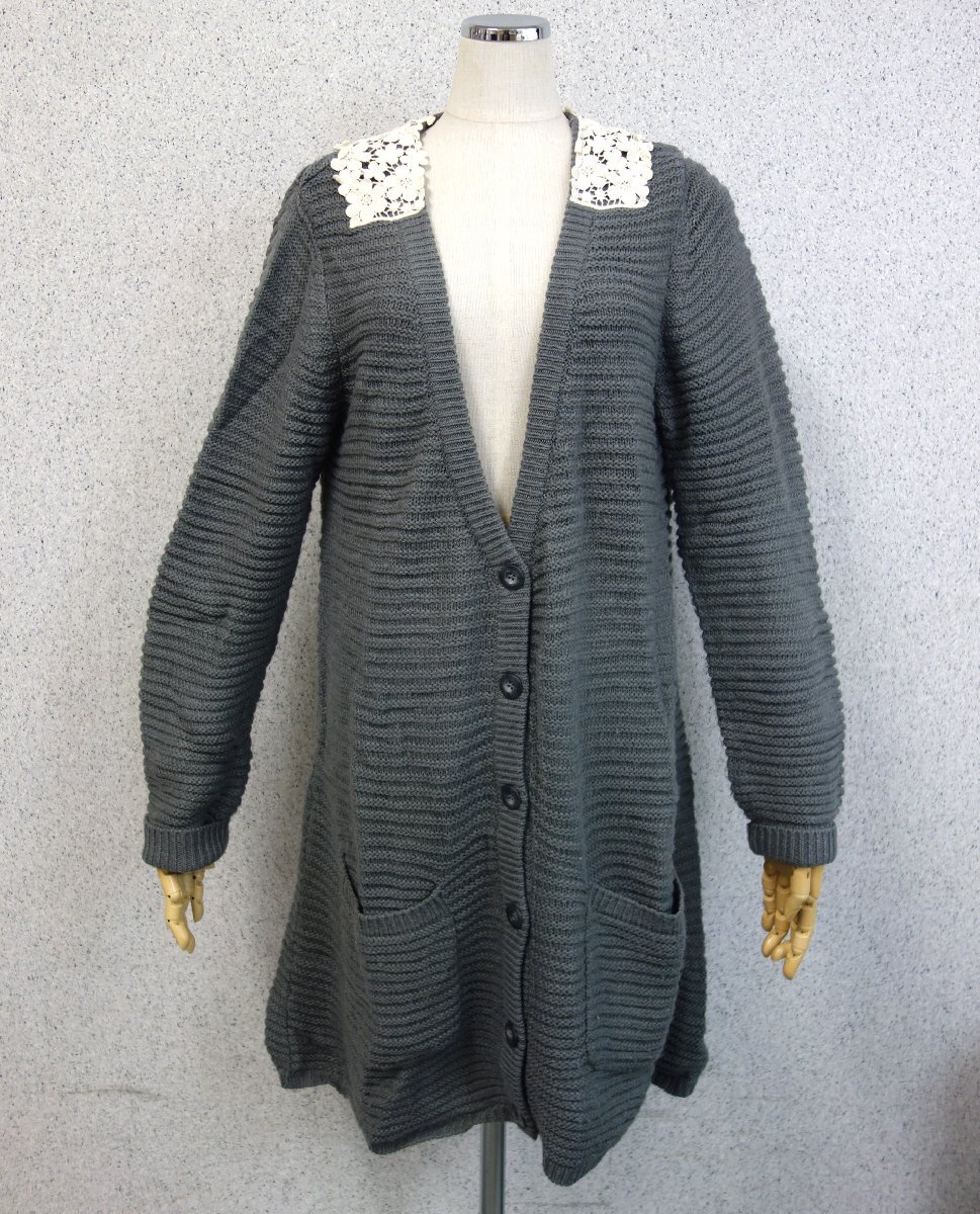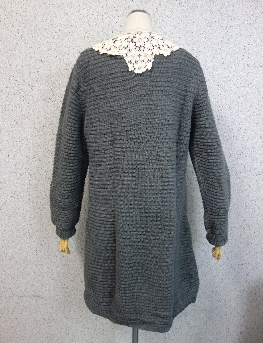 商品名 レディース 長袖 ニット セーター チュニック ロング カーディガン 襟レース