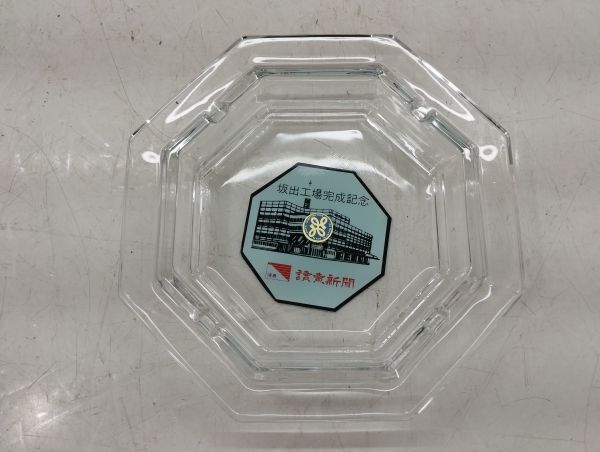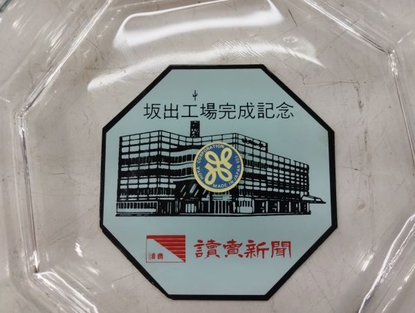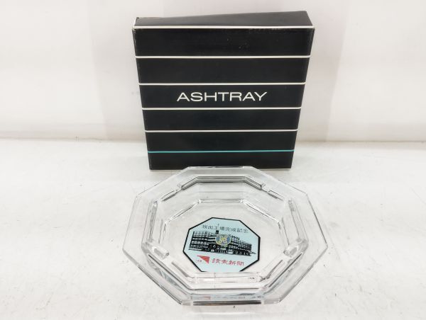 サ/ HOYA ホヤ 灰皿 アッシュトレイ 読売新聞 坂出工場完成記念 記念品 ガラスの灰皿 箱付き 直径17㎝ /HY-0462