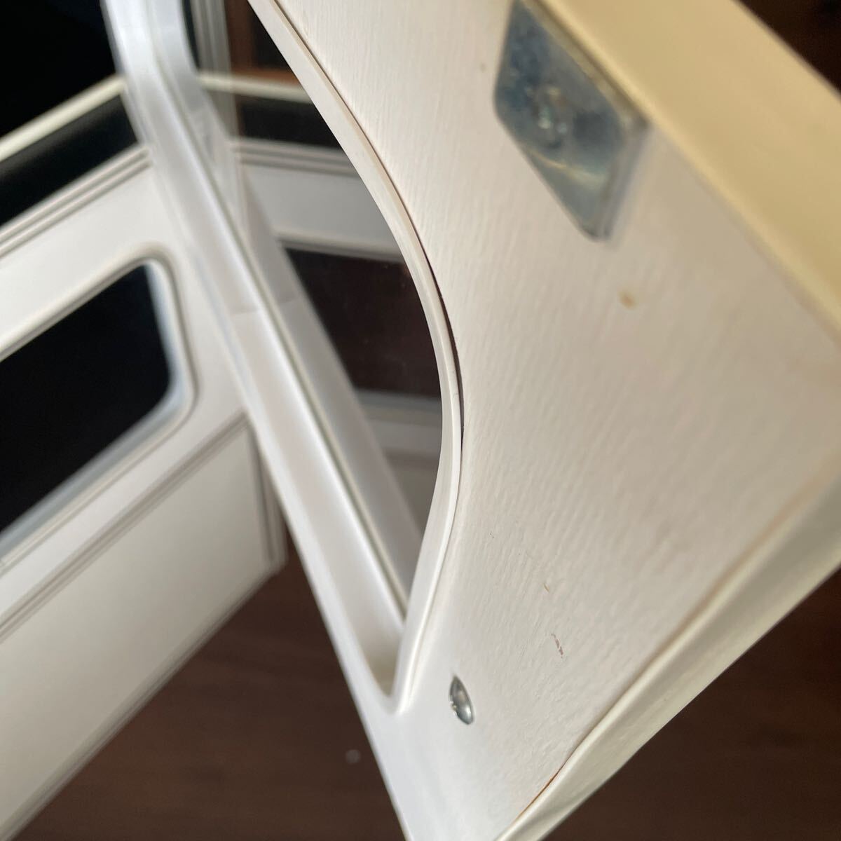 1番上の段は棚板がありますが、ダボが紛失しています。
