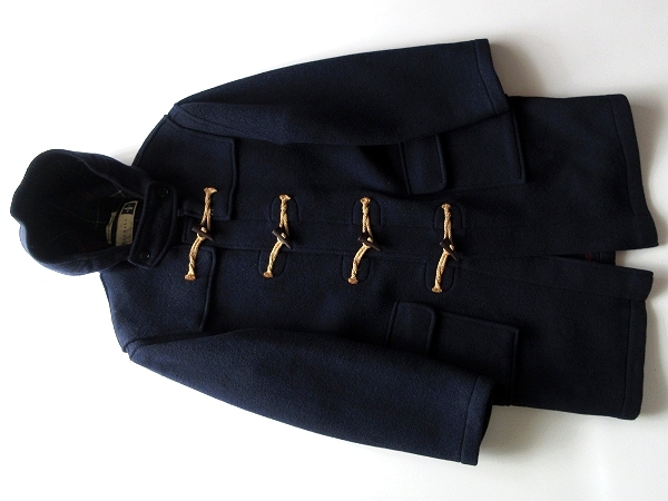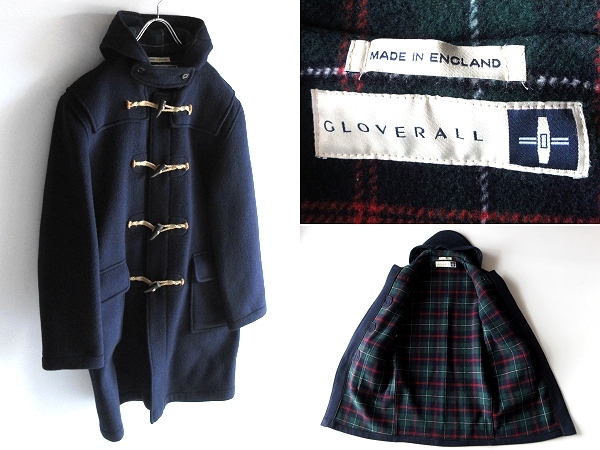 希少 90sビンテージ GLOVERALL グローバーオール チンスト付 裏チェック ウールメルトン ダッフルコート 36 ネイビー 英国製 替トグル釦付