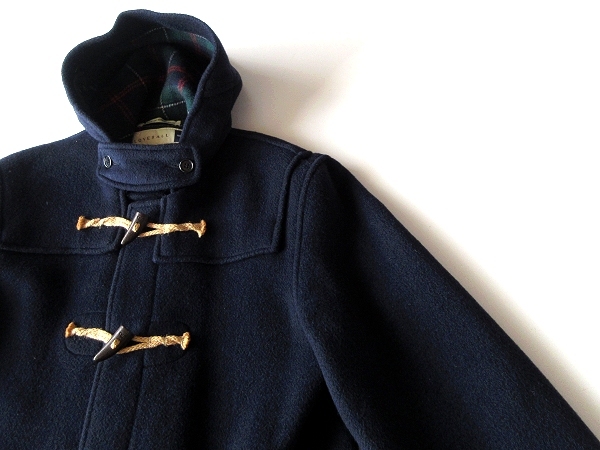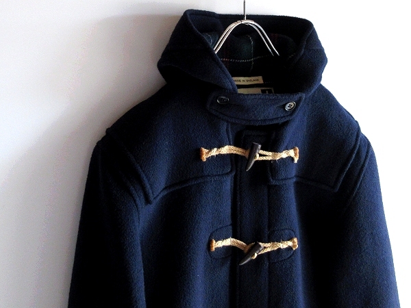 グローバーオールのダッフルコート。肉厚なウールメルトン生地を使用しております。裏のチェック柄がポイント。襟にはチンストラップが付いております。上質な素材使いと綺麗なシルエットで、様々なコーディネートにお使い頂ける一着です。