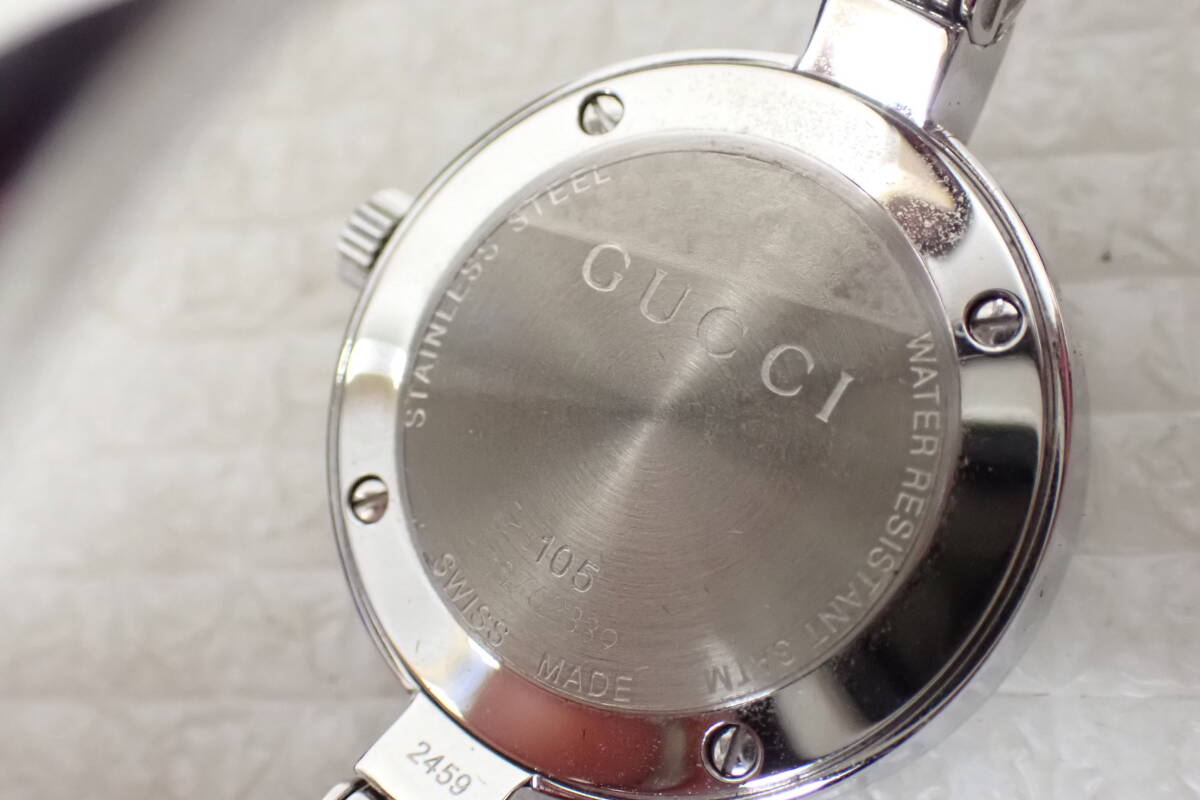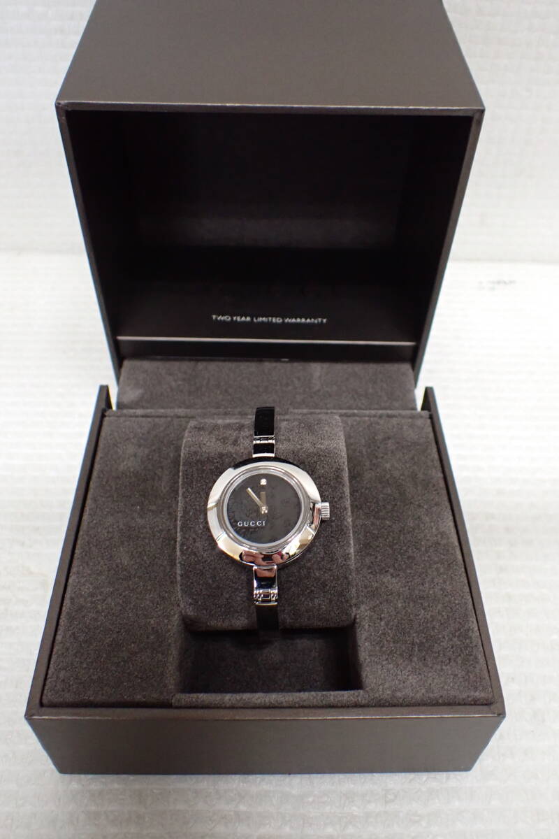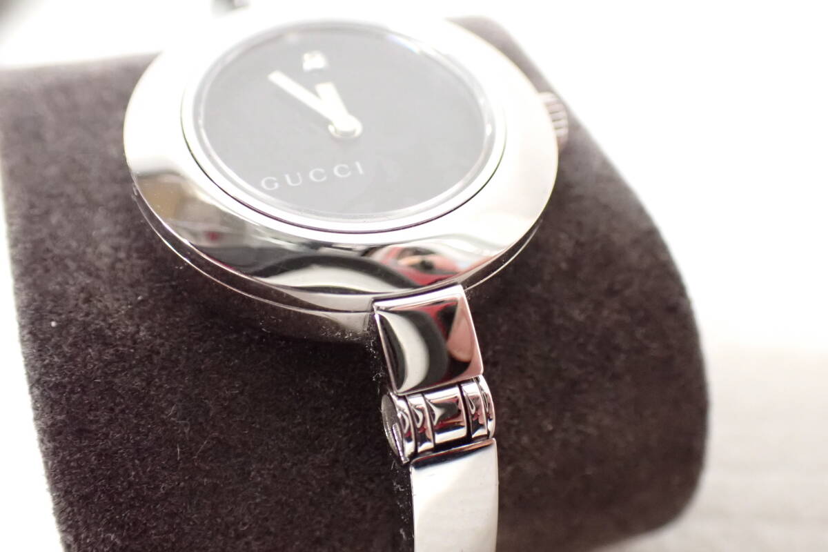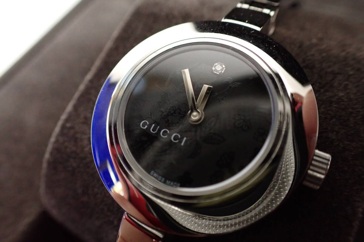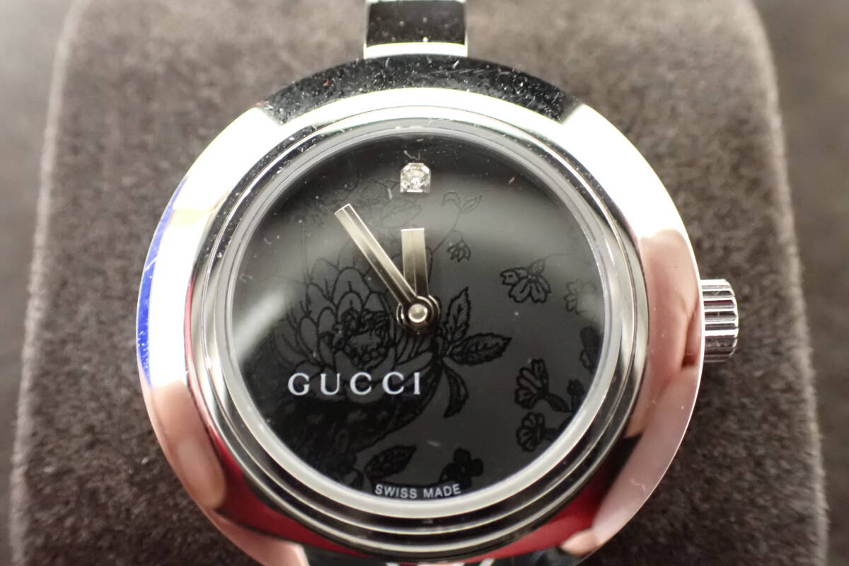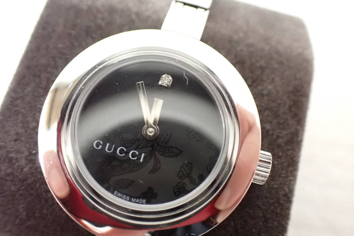 | GUCCI グッチ 105 バングルウォッチ 花柄 フラワー ダイヤ 腕時計 D2-MA 中古品になります。 多少のスレや薄い傷がありますが、目立つ様な大きな傷みはございません。 2024年11月に電池交換をして、現在問題なく稼働中です。 付属品は純正ボックスと取扱説明書と未記載のギャランティカードです。 ○サイズ 文字盤 約2.5cm×約2.6cm(リューズ含む) ベルト幅 約0.5cm 腕回り 約15cm 重量 約35g ※素人採寸の為、多少の誤差はご了承下さい。 詳しい状態などは画像を参考に判断してください。 状態の説明はあくまでも出品者の主観ですので、神経質な方のご入札はお控え願います。 ※ご使用のパソコン、モニターなどの環境によっては実際の色と若干異なって見える場合がございます。 お探しの方はお見逃しなく! この機会にぜひどうぞ! ノークレーム・ノーリターンとなります。 よろしくお願いします。 特定商取引法に基づく表記 【会社名】 株式会社 西川殖産 【代表取締役】 西川 守 【古物営業許可】 兵庫県公安委員会許可 第631641300006号 【店舗】 エタニティ野里店 【営業所所在地】 兵庫県姫路市野里311-3 アクロポリスⅡ-1F 【連絡先】 079-222-7705 【営業時間】 午前10時~午後7時 【定休日等】 水曜日は定休日となっておりますので、火曜日の夕方から水曜日にご入金、ご連絡などをしていただいた方へのご連絡・発送などは翌日以降となってしまいます。 オークションにつきましても、火曜日の夜から水曜日にご落札していただいた方へのご連絡は翌日以降となってしまいます。 ※その他、GW・お盆・年末年始などもお休みを頂いておりますので、その期間中などもご連絡・発送などできません。(※休みの期間はその都度異なりますので、お急ぎの方は事前にご質問などでご確認していただけますよう、よろしくお願いします。) こちらの都合で誠に申し訳ありませんが、あらかじめご了承いただいた方のご入札をお願い致します。 | |||