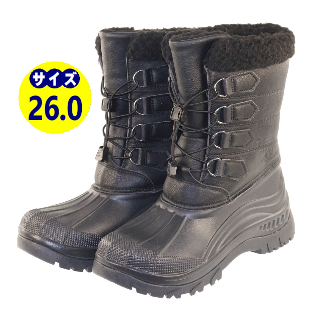 【新品】男女兼用 防寒防水ダウンブーツ『24341-blk-260』ブラック スノーシューズ 防寒ブーツ 寒さ対策 防水 ボア 起毛素材