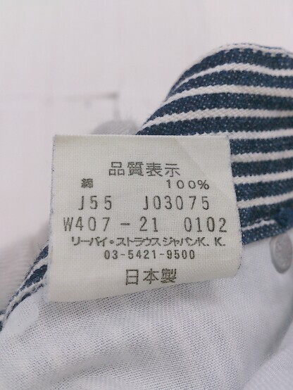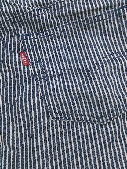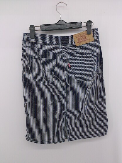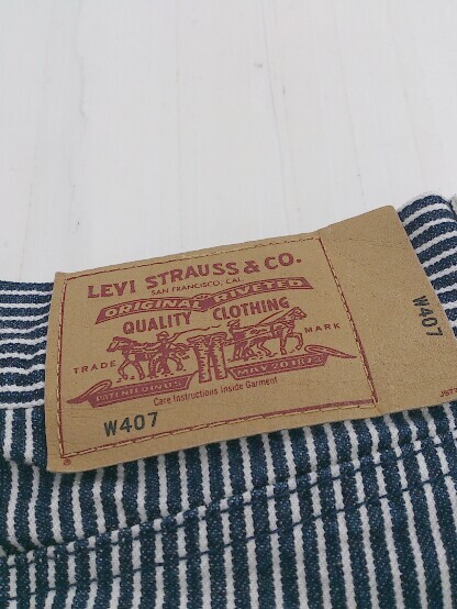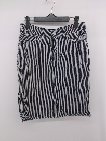 ◇ Levi's W407 ストライプ バックスリット 膝下丈 タイト デニムスカート サイズ29 ネイビー ホワイト レディース E