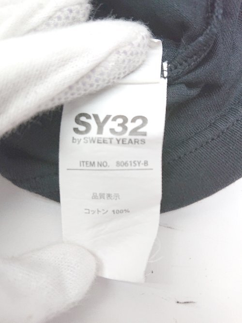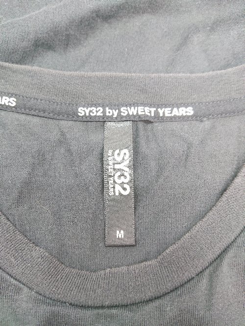 ◇ SY32?by SWEET YEARS ロゴプリント クルーネック コットン100% シンプル 半袖 Tシャツ サイズM ブラック レディース E