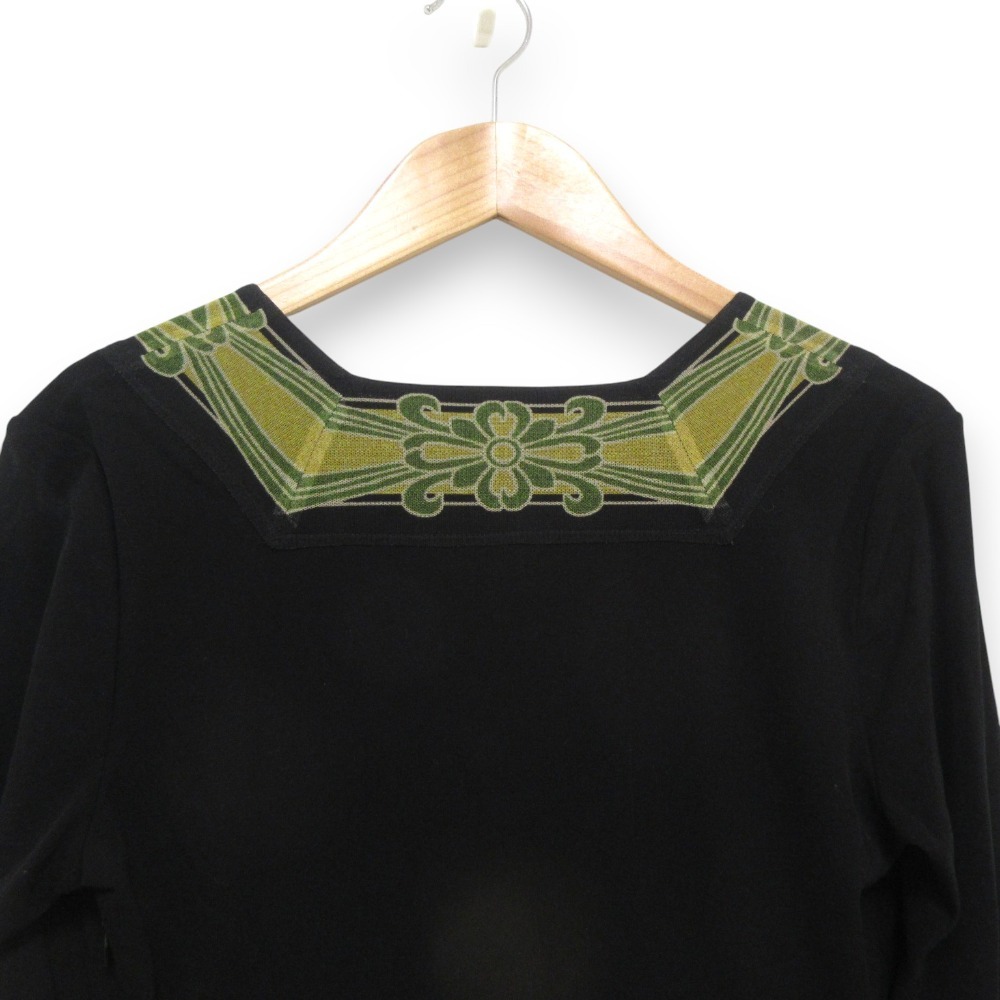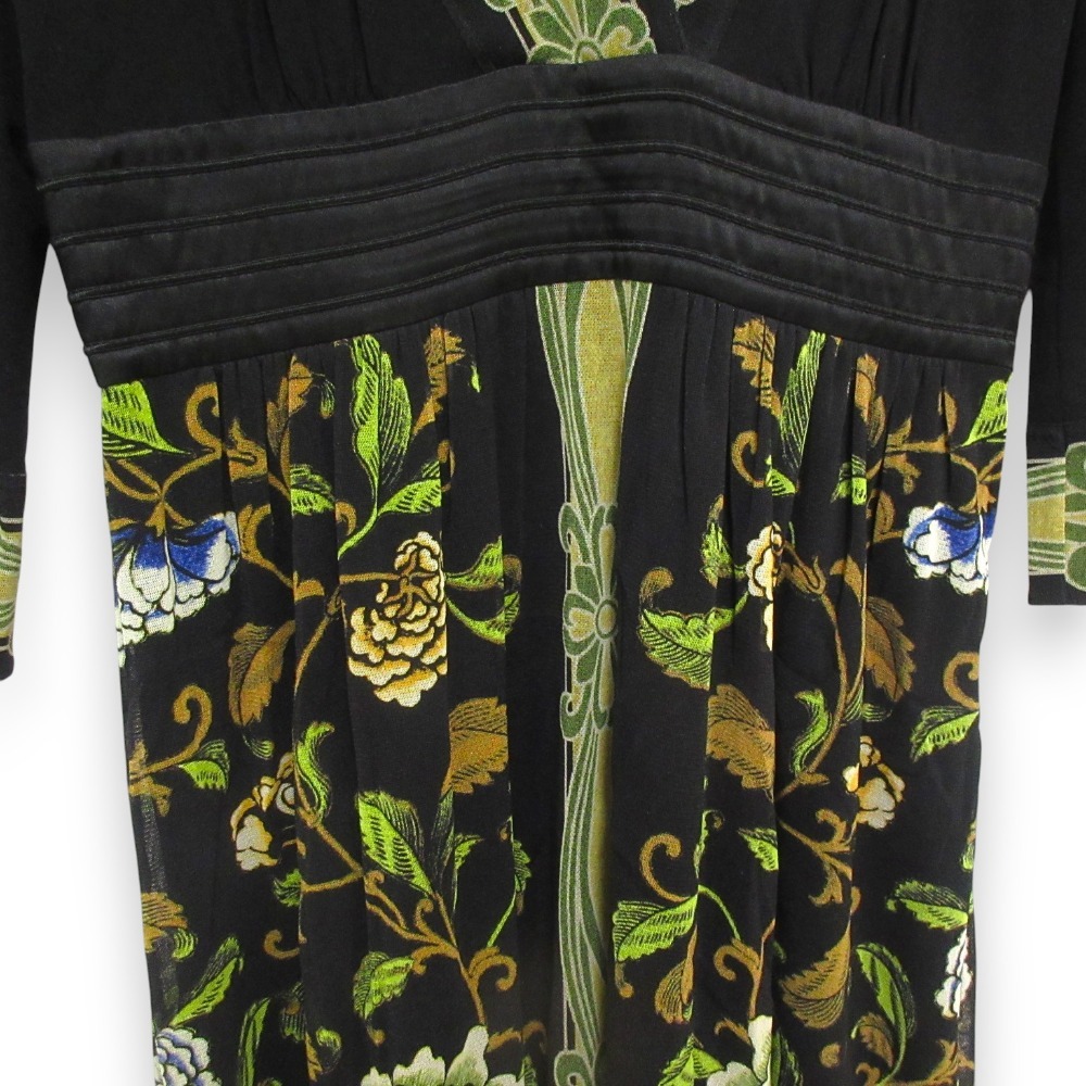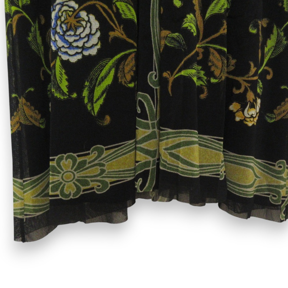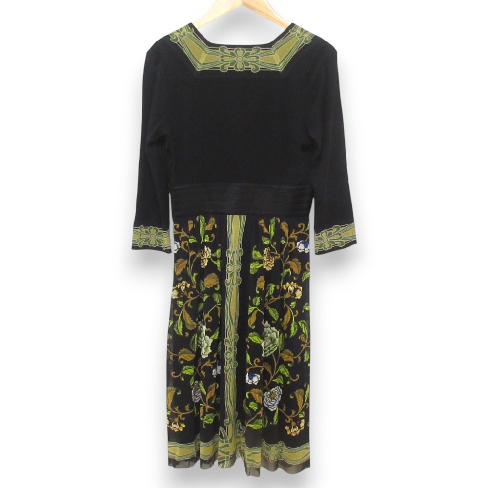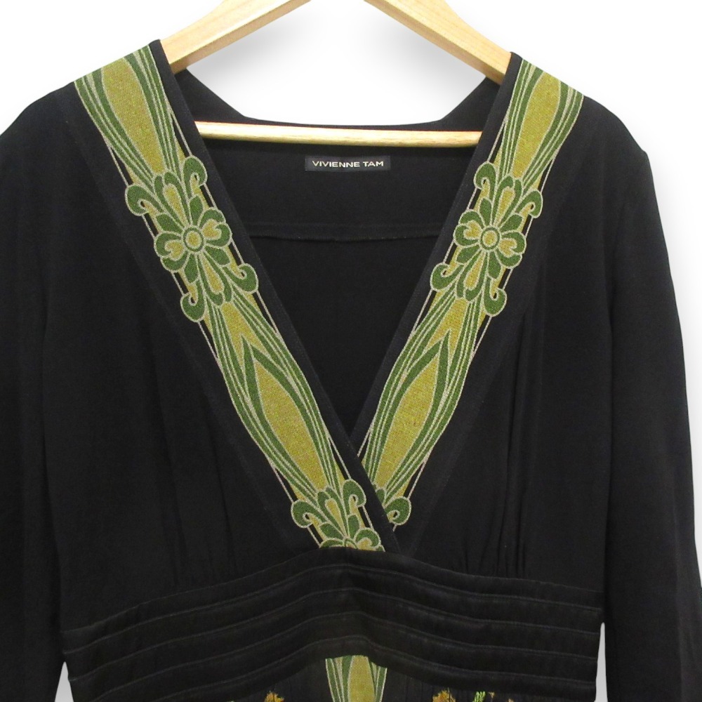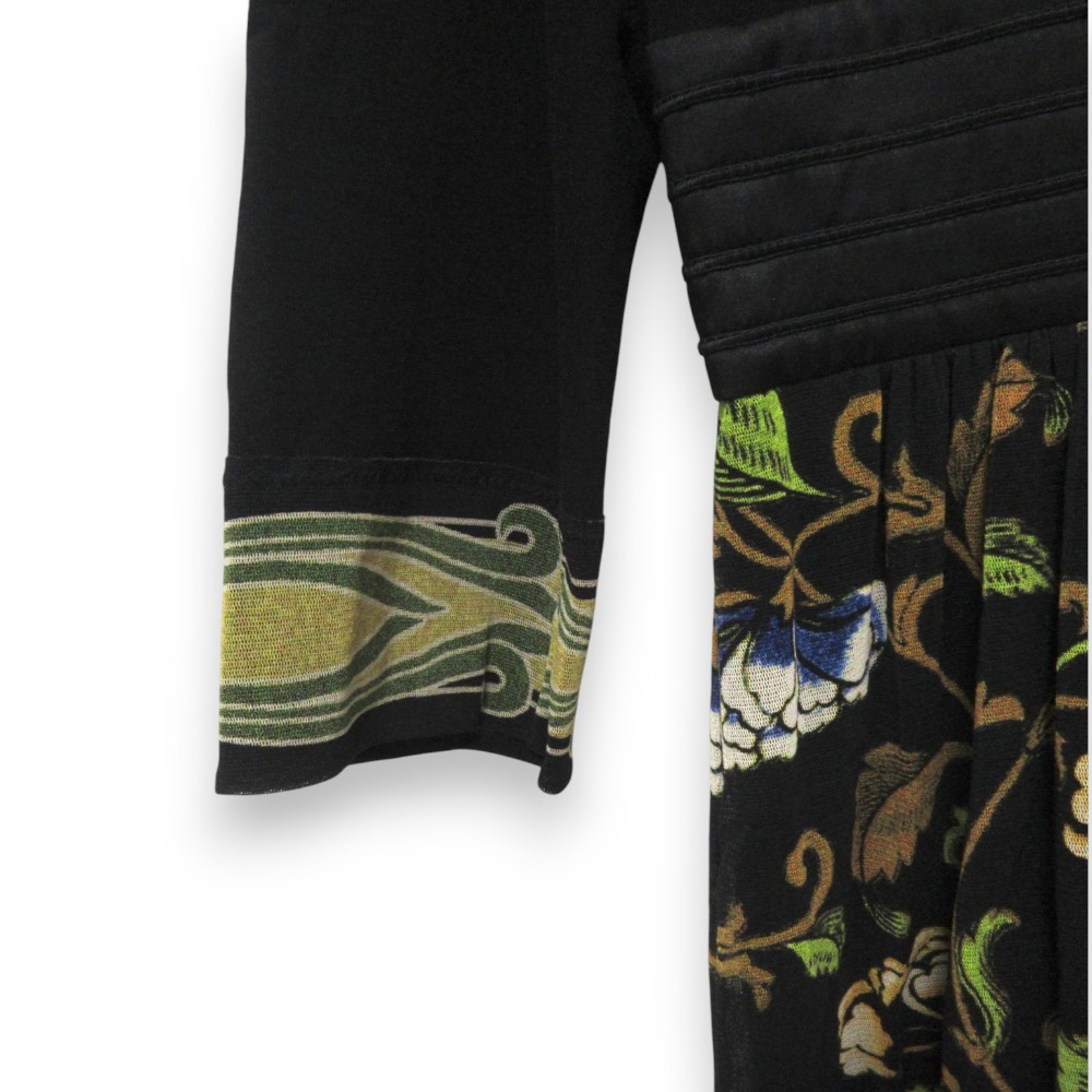 良品 VIVIENNE TAM ヴィヴィアンタム フラワープリント カシュクール パワーネット 長袖 ミモレ丈ワンピース ブラック グリーン系
