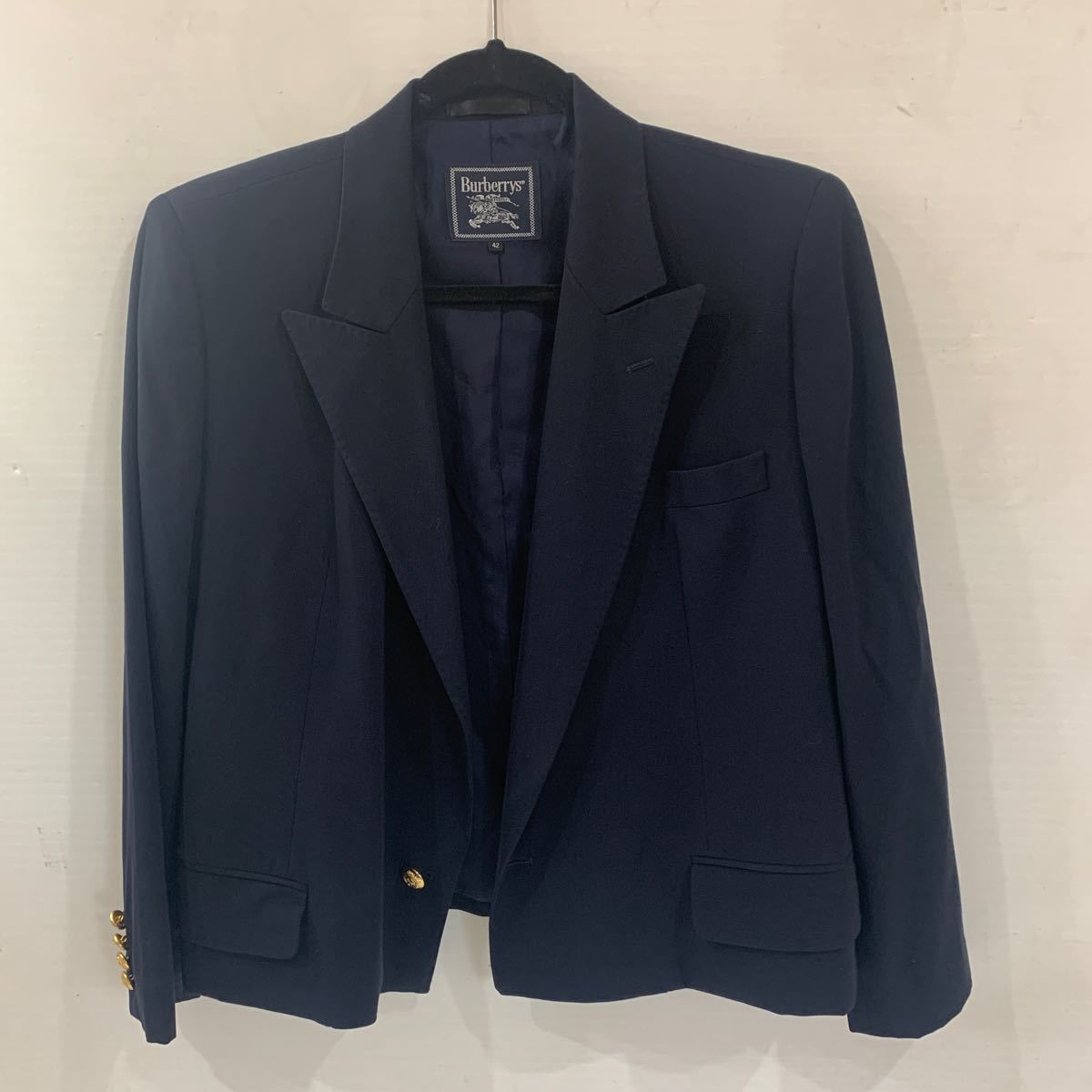 KD0229 Burberry 金ボタン ショート丈 テーラードジャケット 古着女子 長さ56cm 肩幅42cm 袖長56cm 0826
