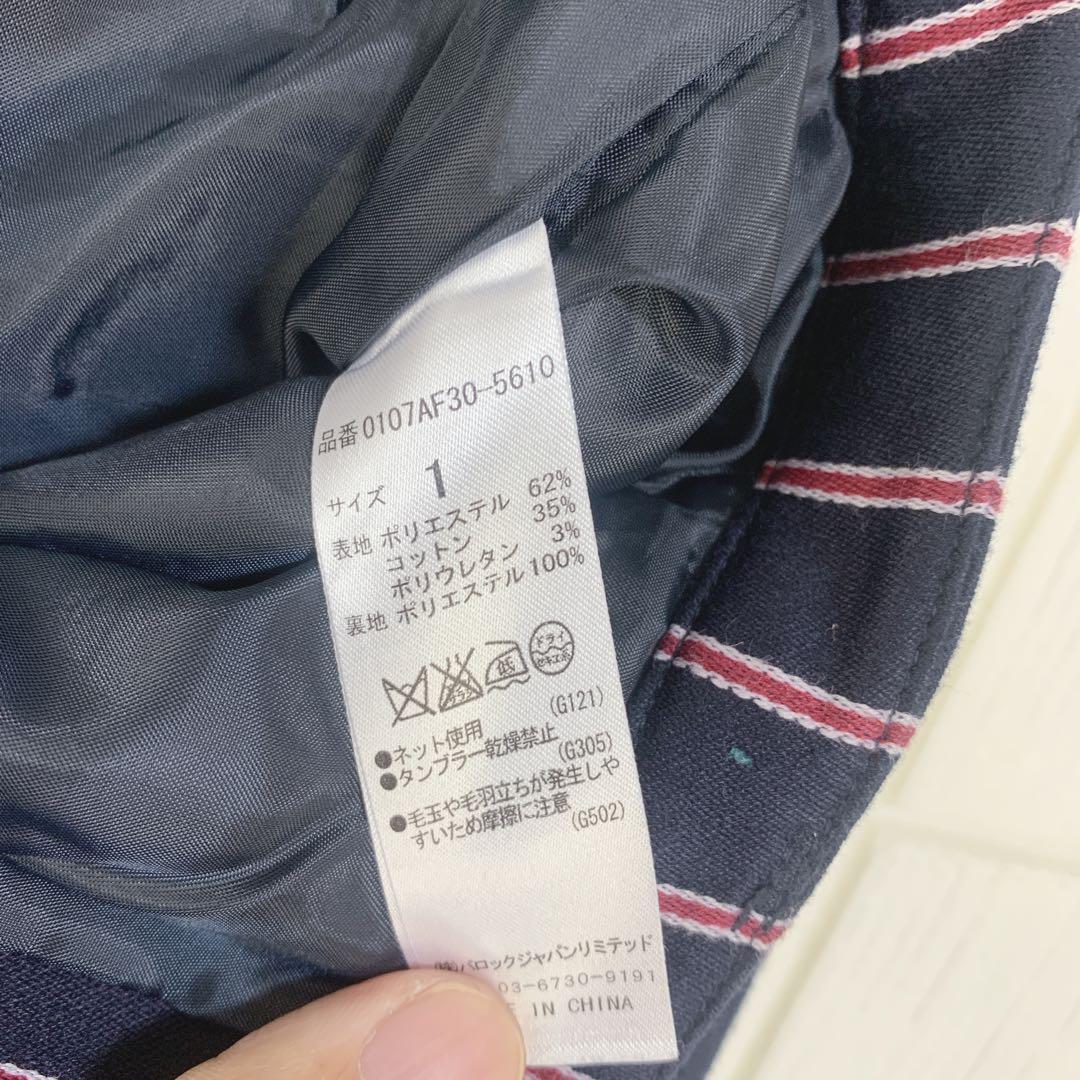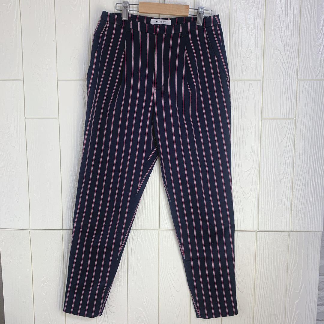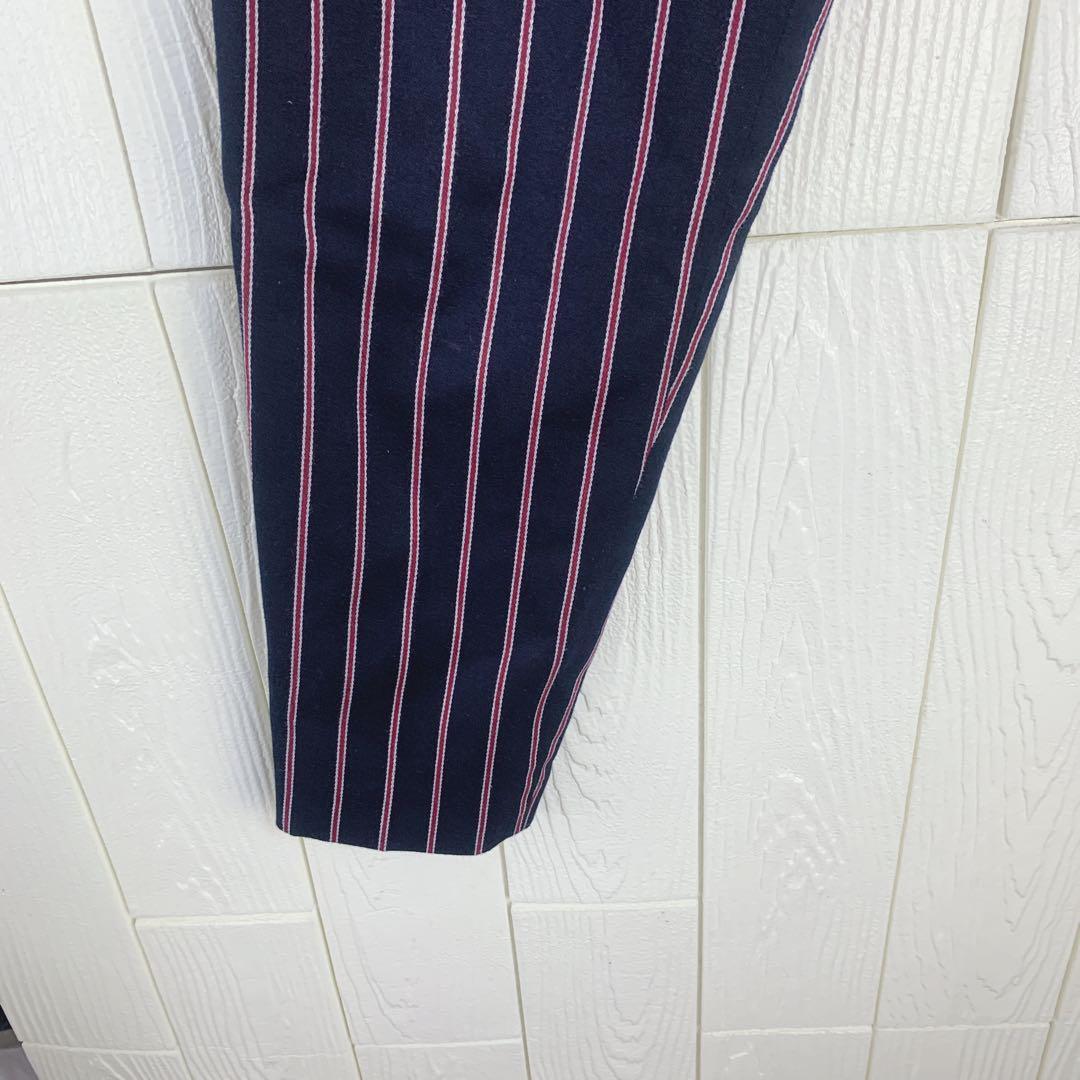 Moussyのフリーサイズストライプパンツは、ネイビーとレッドのストライプが特徴です。どんなトップスとも合わせやすく、カジュアルからフォーマルまで幅広く活躍します。