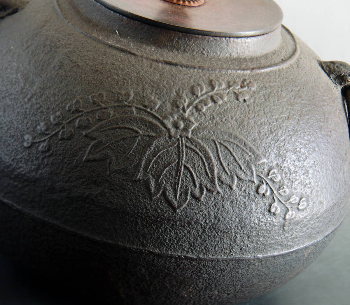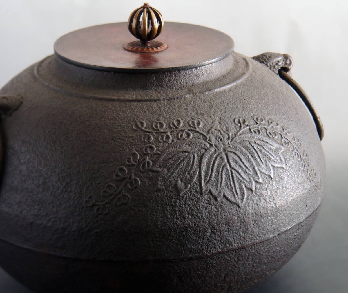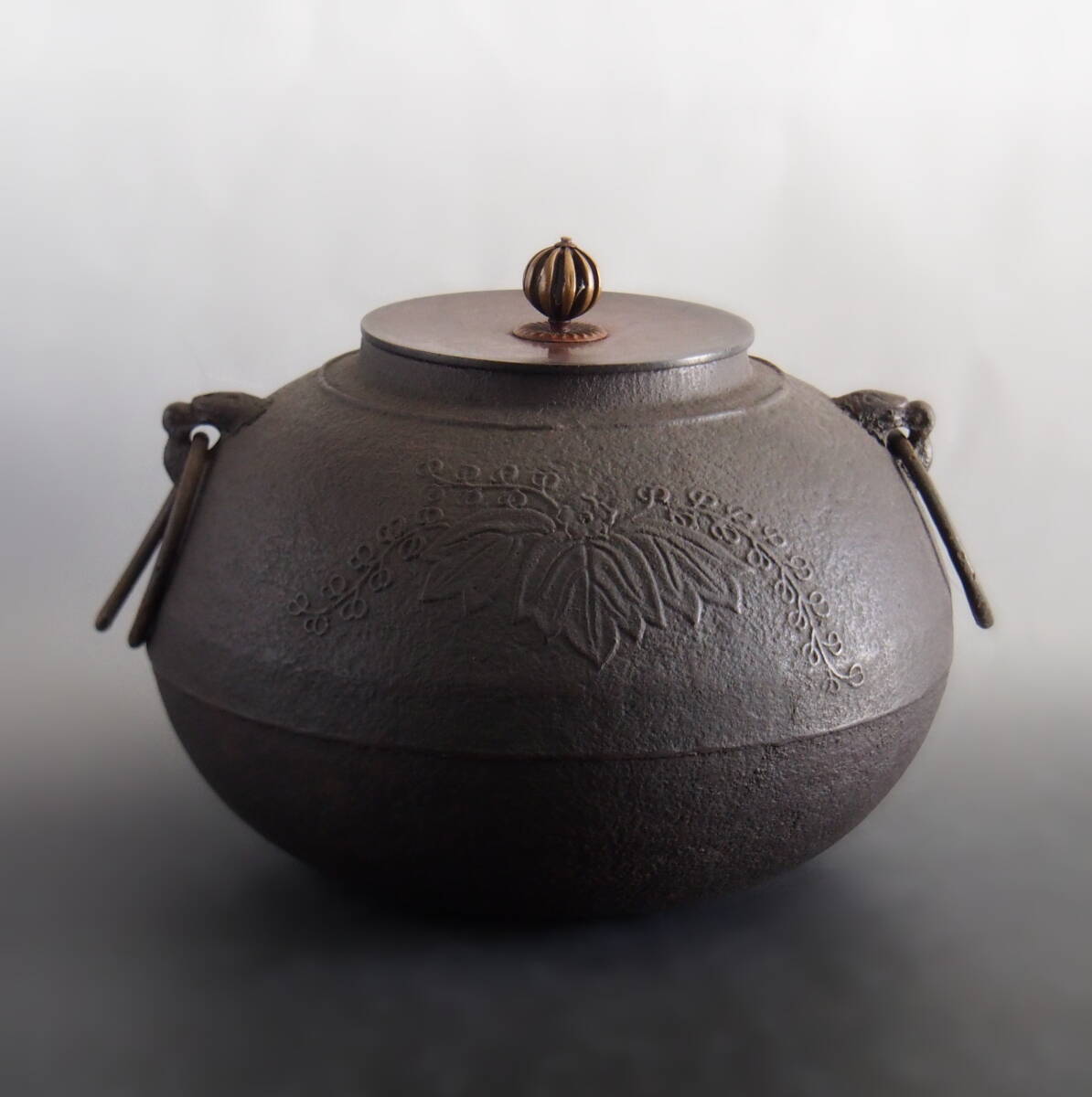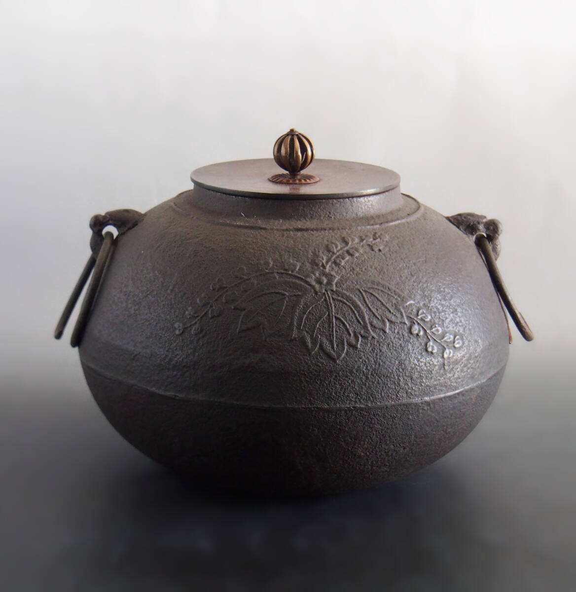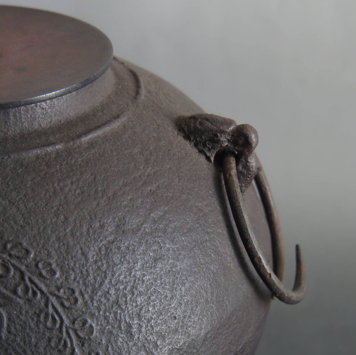 凛然と美しい姿で鉄地に映る桐文様がとても麗しく、丸みの柔らかさと形状そして精巧な造りは侘び寂の美意識と情趣が表現された素晴らしい作品となっております。