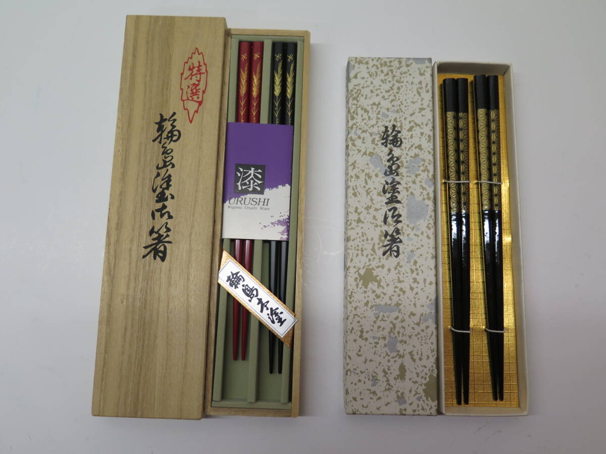 未使用保管品 輪島塗 夫婦箸 塗り箸 まとめて すすき・トンボ 麻の葉柄
