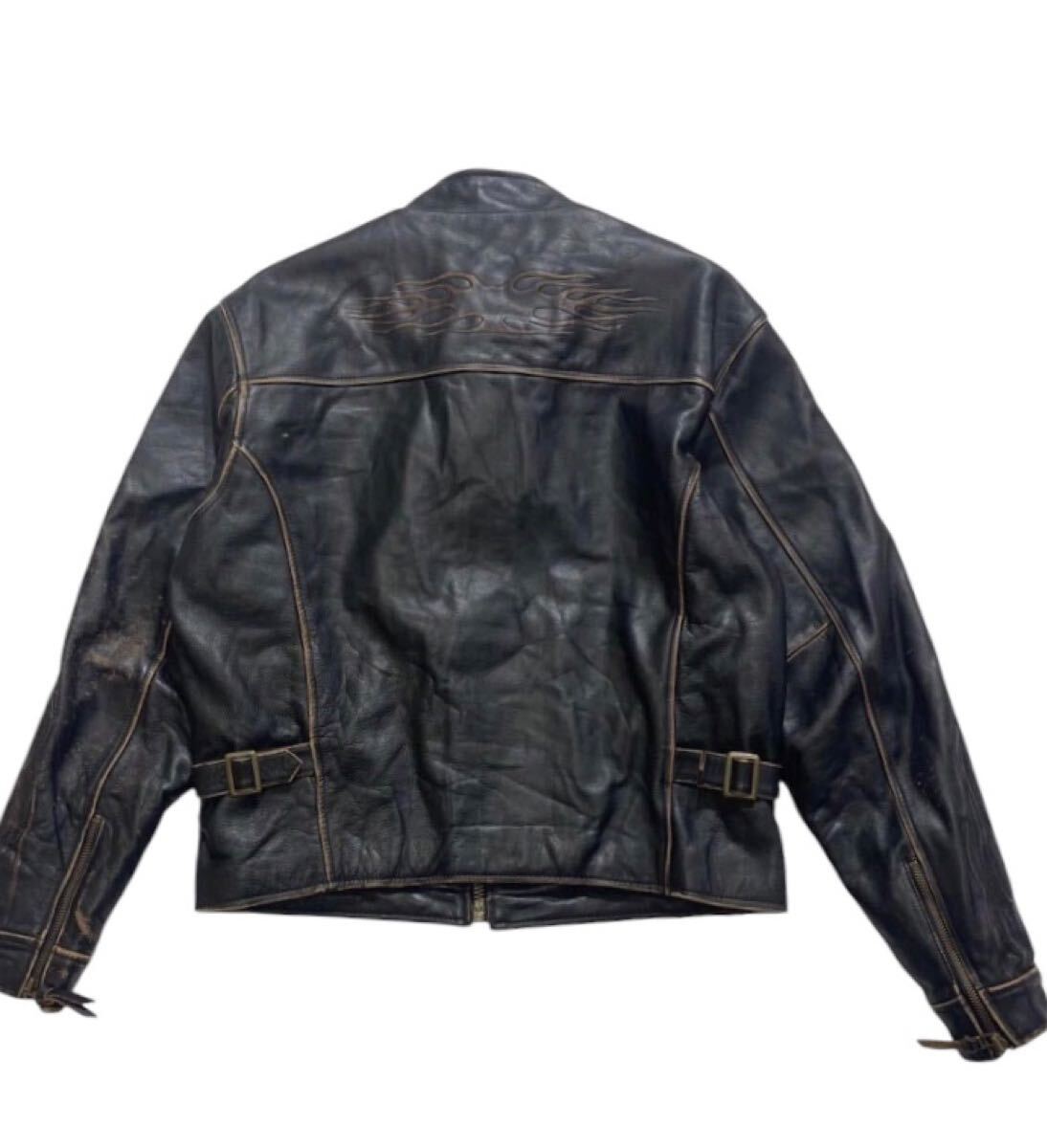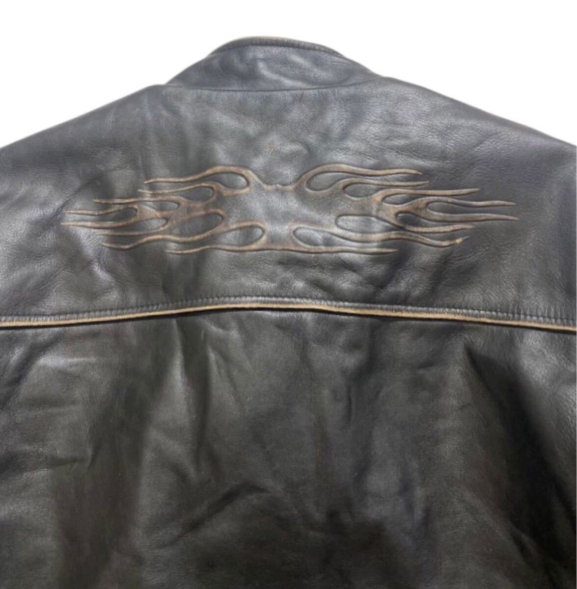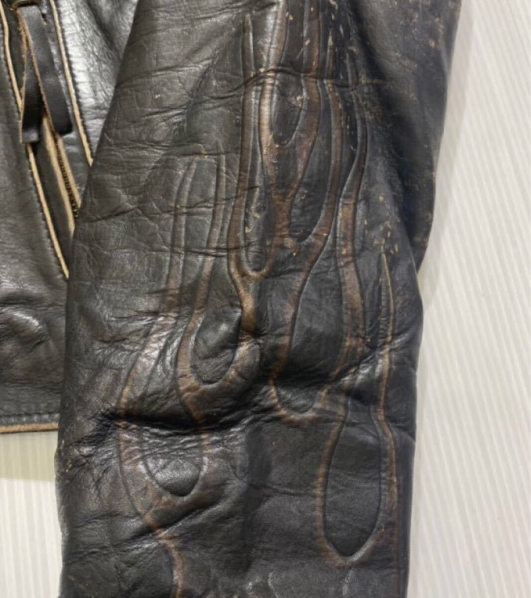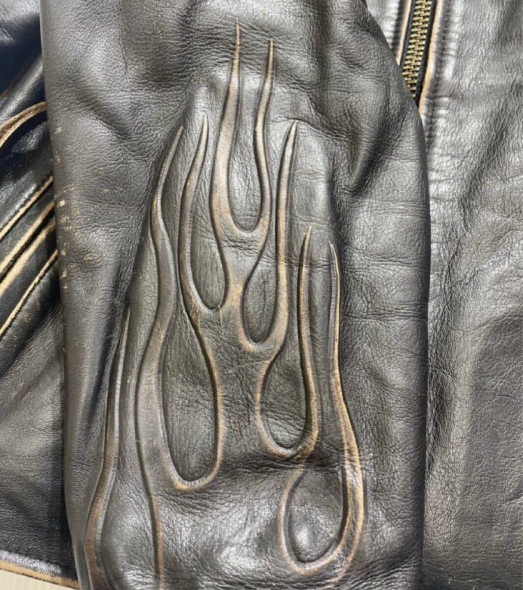 上質 本革 牛革 レザー ファイヤーパターン エンボス加工 シングル ライダース ジャケット になり使い勝手もよく大変格好いいです