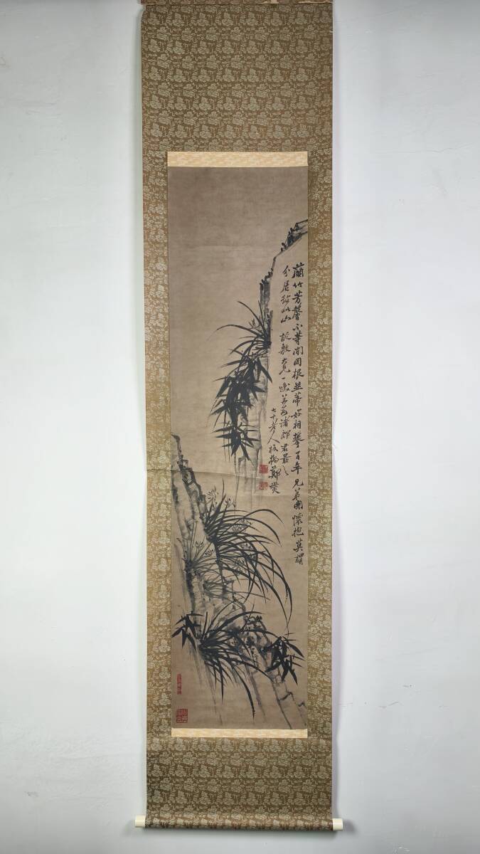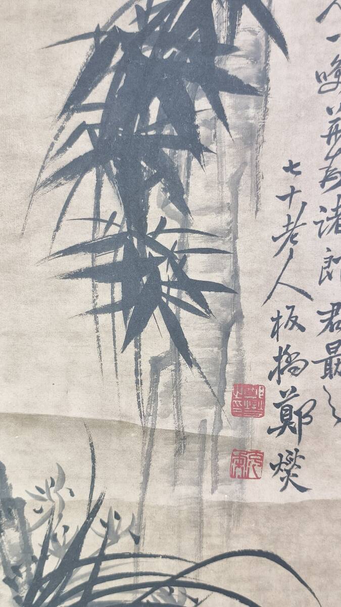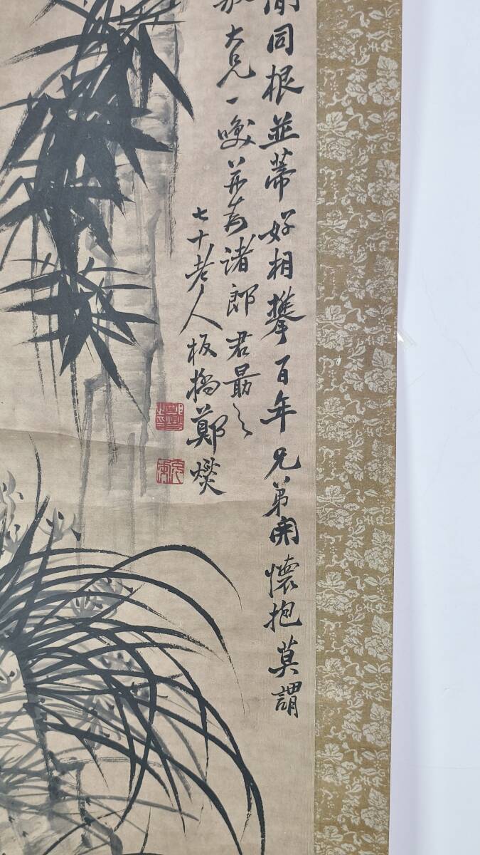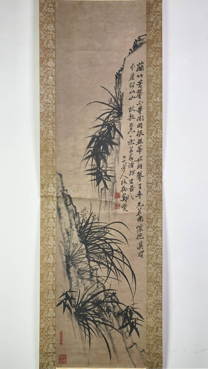 中国書画 典蔵掛軸 【竹石図&鄭板橋】書道巻物 真筆逸品 古美術品 画心137 × 33.5cm 紙本 LOT-1274 | |||