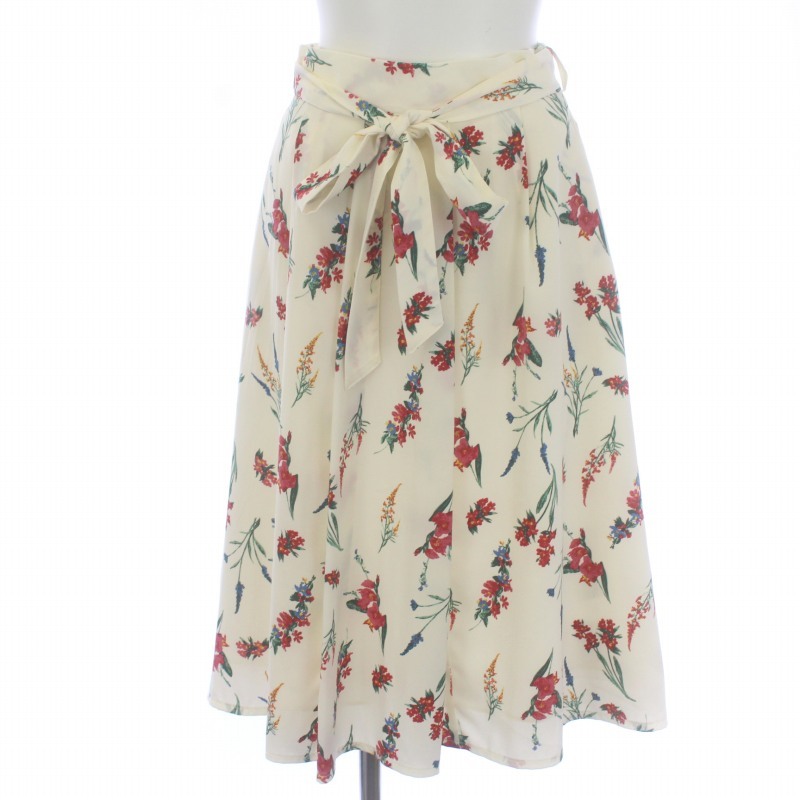 エージーバイアクアガール AG by aquagirl リボンベルト付き花柄スカート ロング ミモレ タック 総柄 白 ホワイト C12-76034