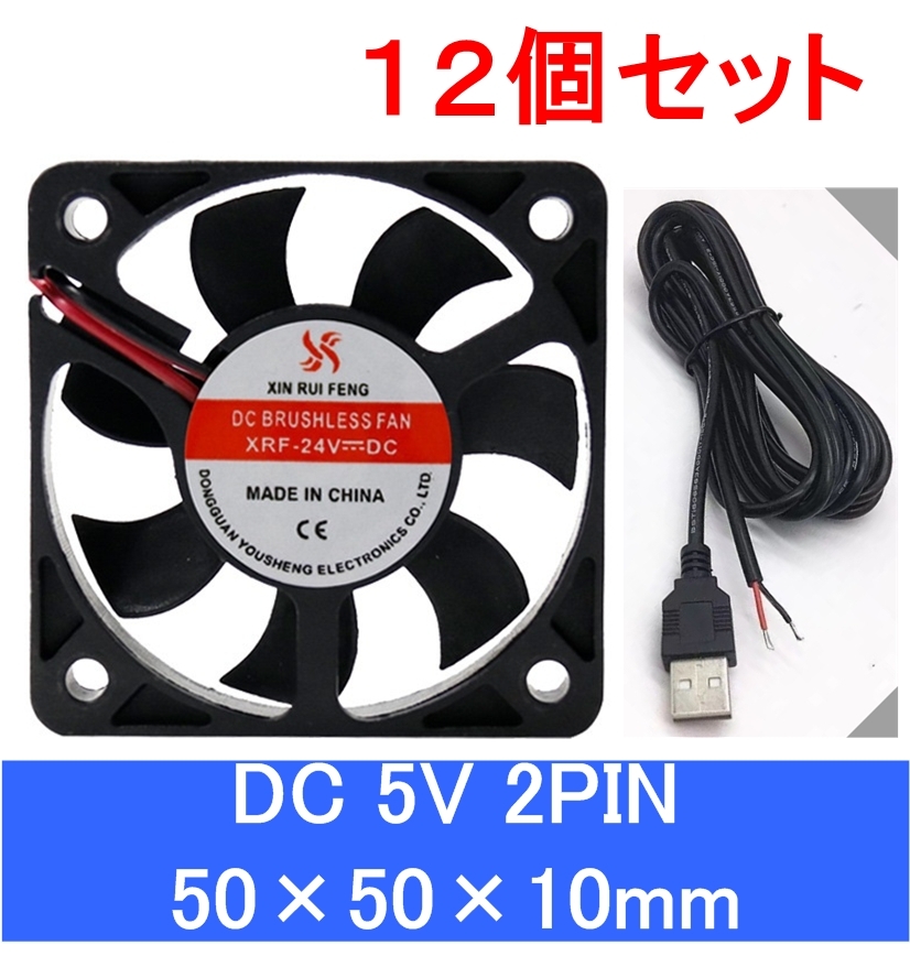 12個セット 小型 クーリングファン V5V 50×50×10mm USBケーブル付き 501005 2ピン(冷却 DC クーラー 空冷 USB 送風 排気 換気 ファン、,