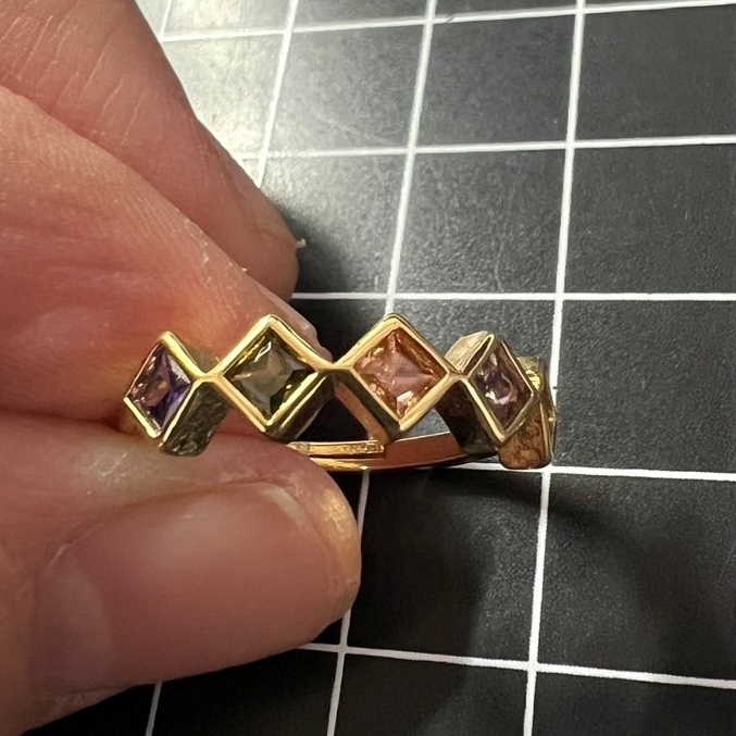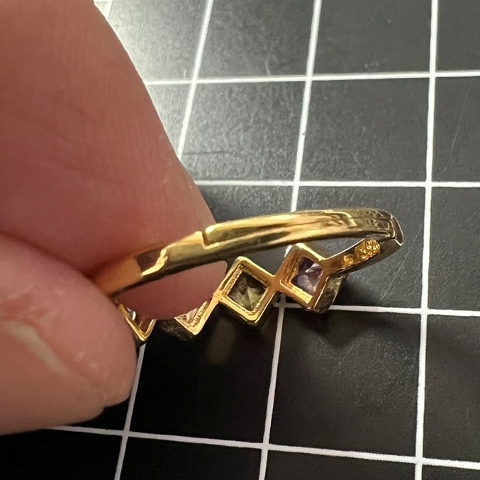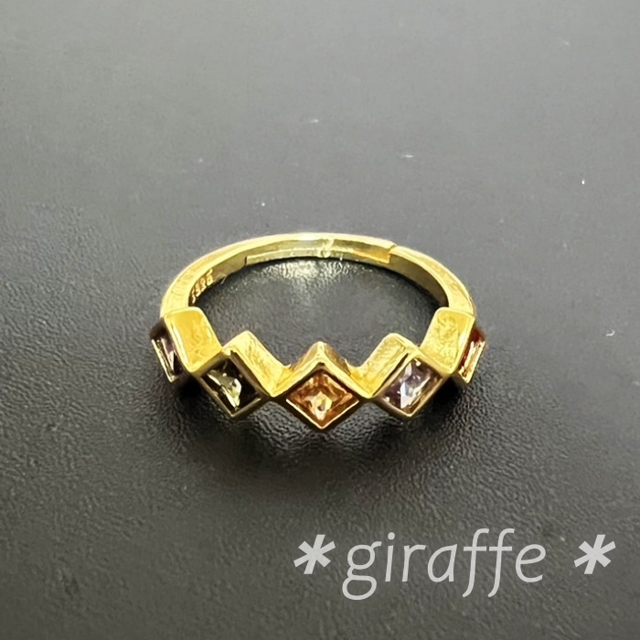 菱形のストーンとゴールドカラーが華やかで上品な指輪です。
