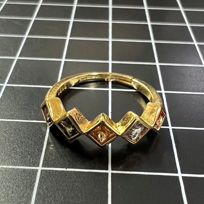 A817 匿名配送 指輪 レディース カラー ジルコニア s925 ゴールド フリーサイズ サイズ調節可能 菱形