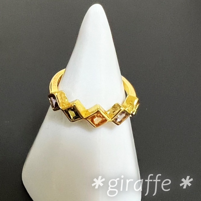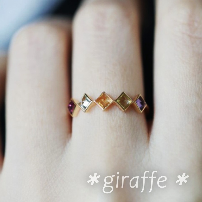 カラージルコニアが並んだ可愛らしいリングです。