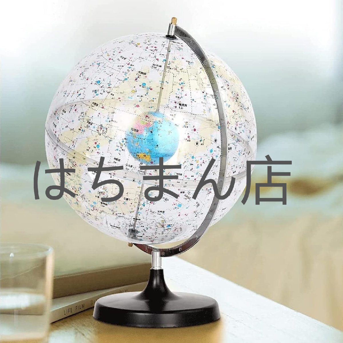 【クリエイティブなデザイン】 - 天球の中心を通る金属シャフトがあり、天の軸を表しています。軸の端は天球の北極と南極になります。天球は天軸を中心に回転することができます。