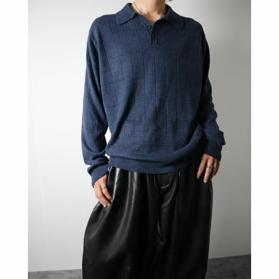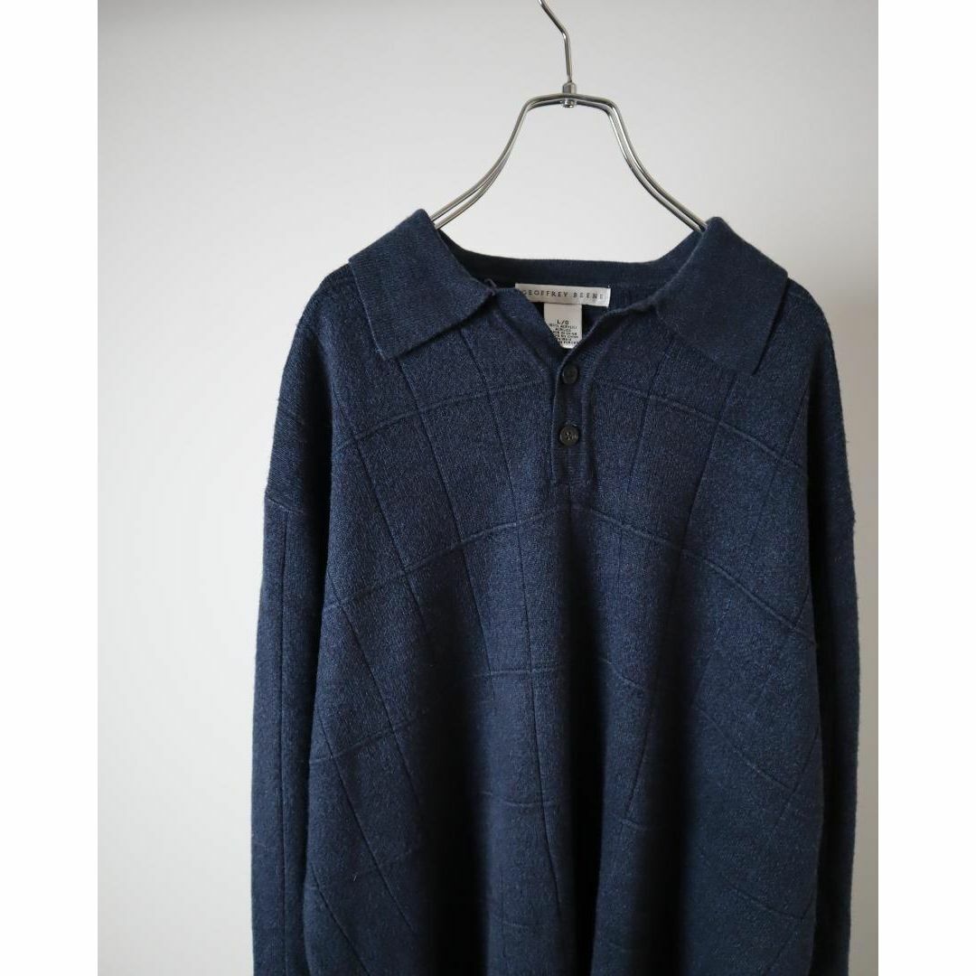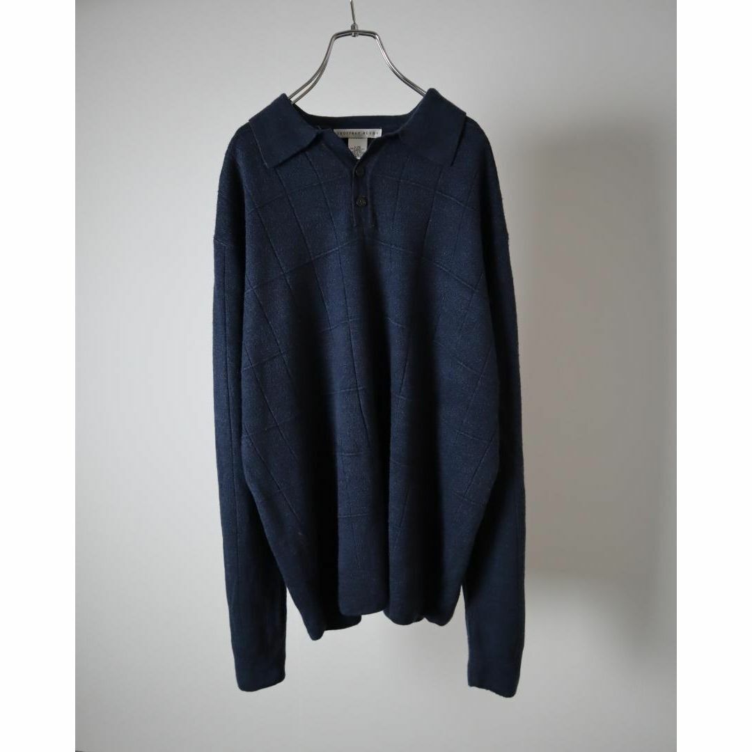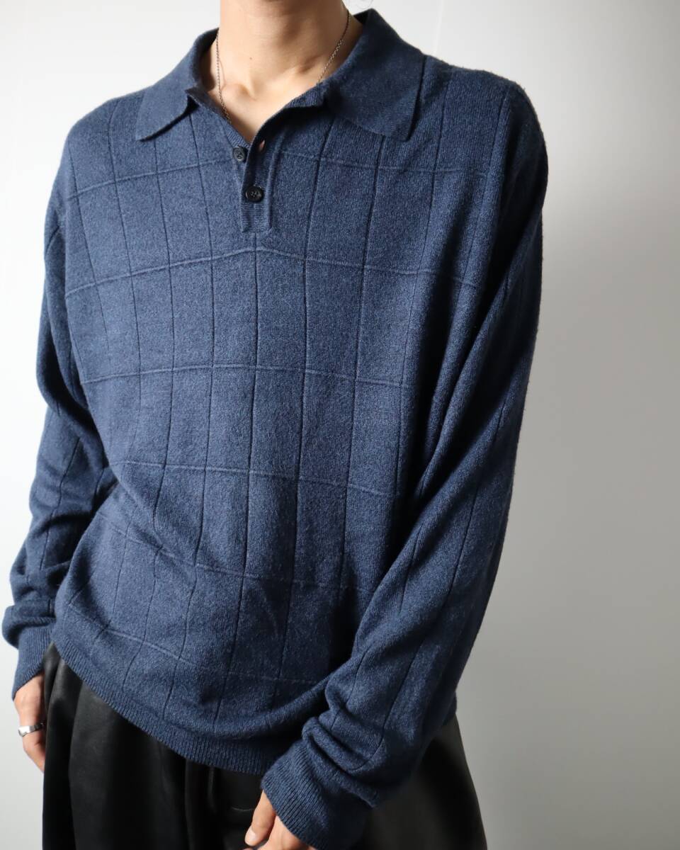 ▼Item / Jacquard Check Vinatge Knit Polo Shirt Navy