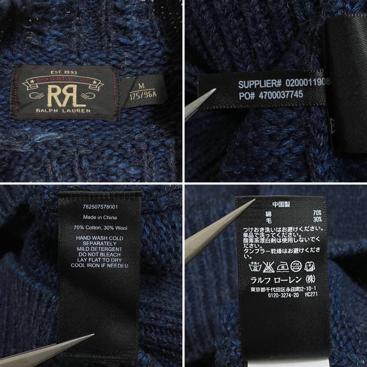 RRL ローゲージ コットンウール ラグラン ニット セーター インディゴブルー Mサイズ DoubleRL RALPH LAUREN ダブルアールエル 4120104