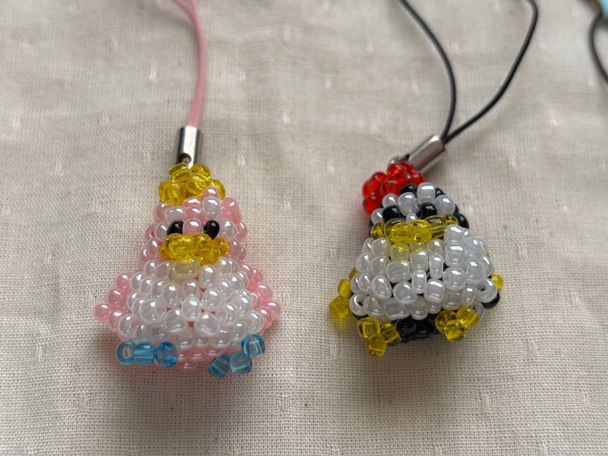 ペンギンのビーズストラップ2種セットです。