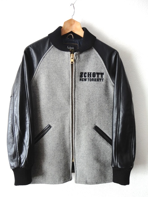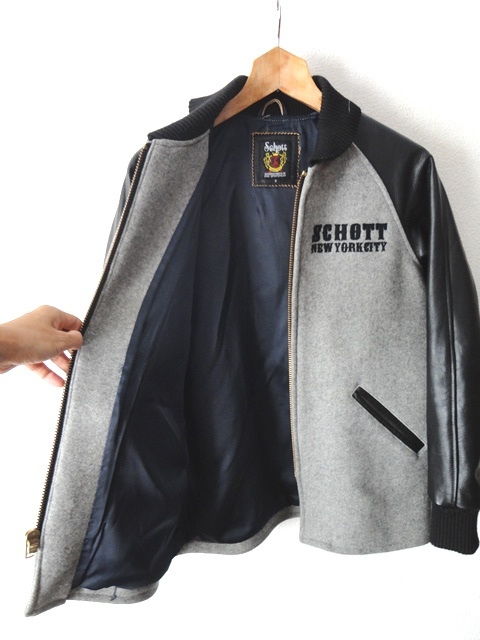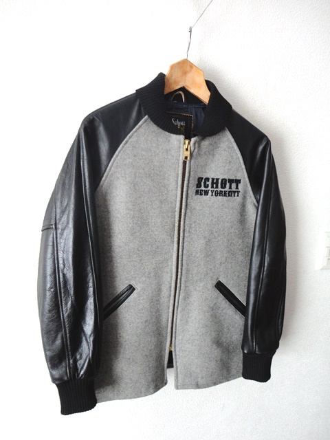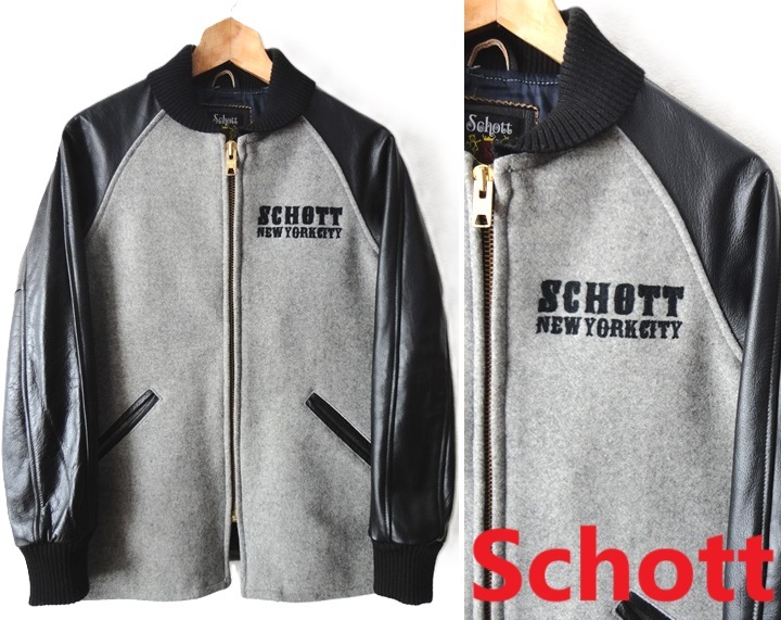 美品/Schott:ショット/上質 牛革/袖カウレザー×メルトンウール 刺繍入り ファラオジャケット/ファラオコート/グレー×ブラック/Ssize