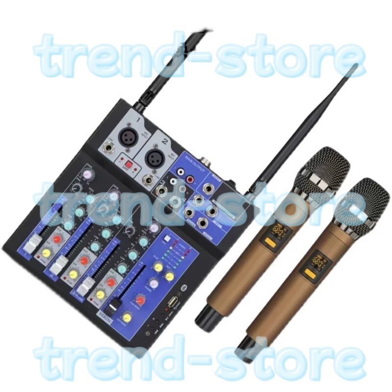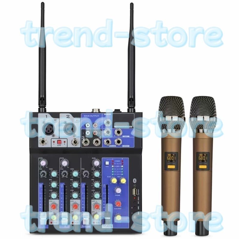ワイヤレスマイク付き4チャンネルオーディオミキサー★ミキシングコンソール