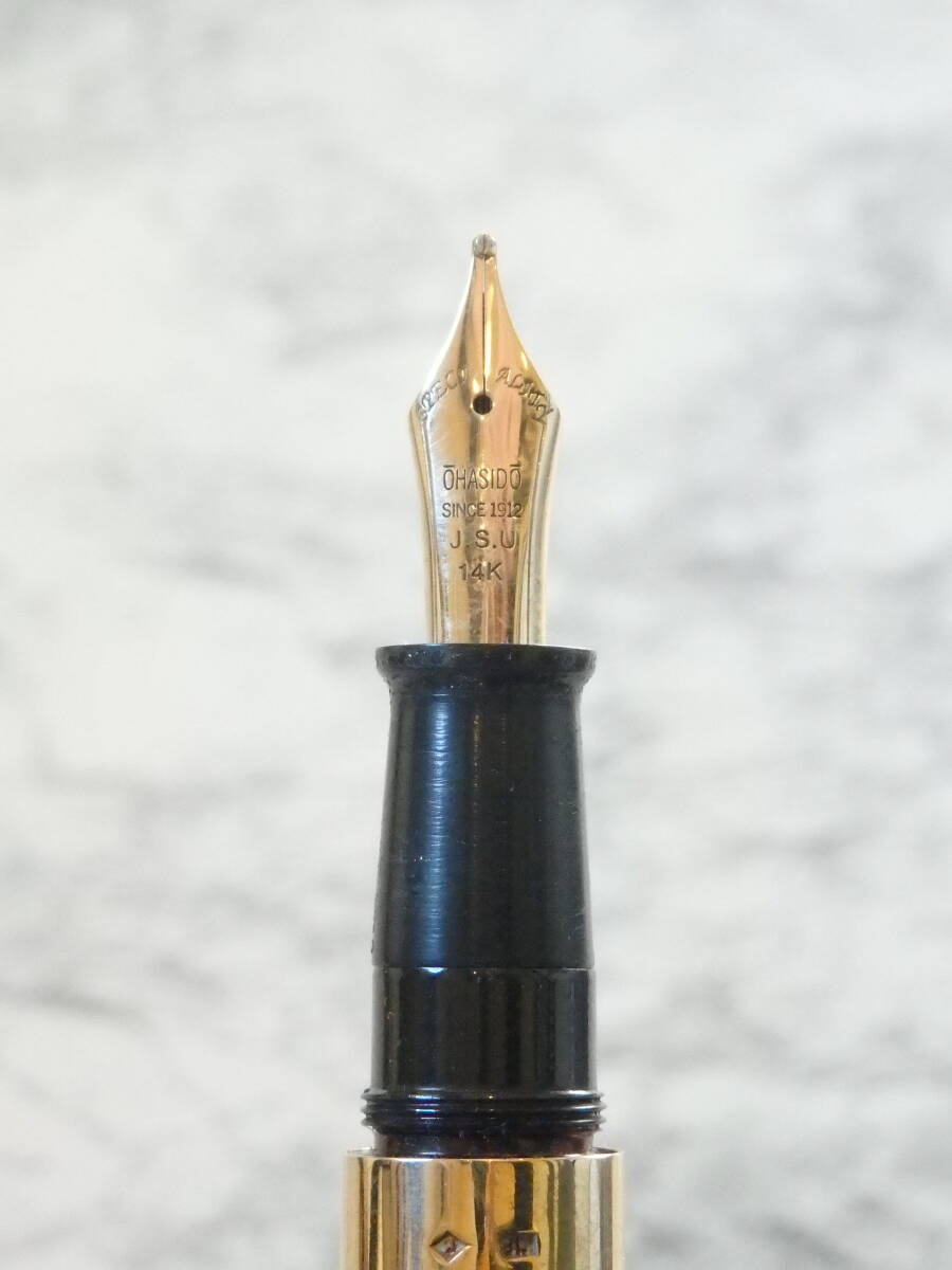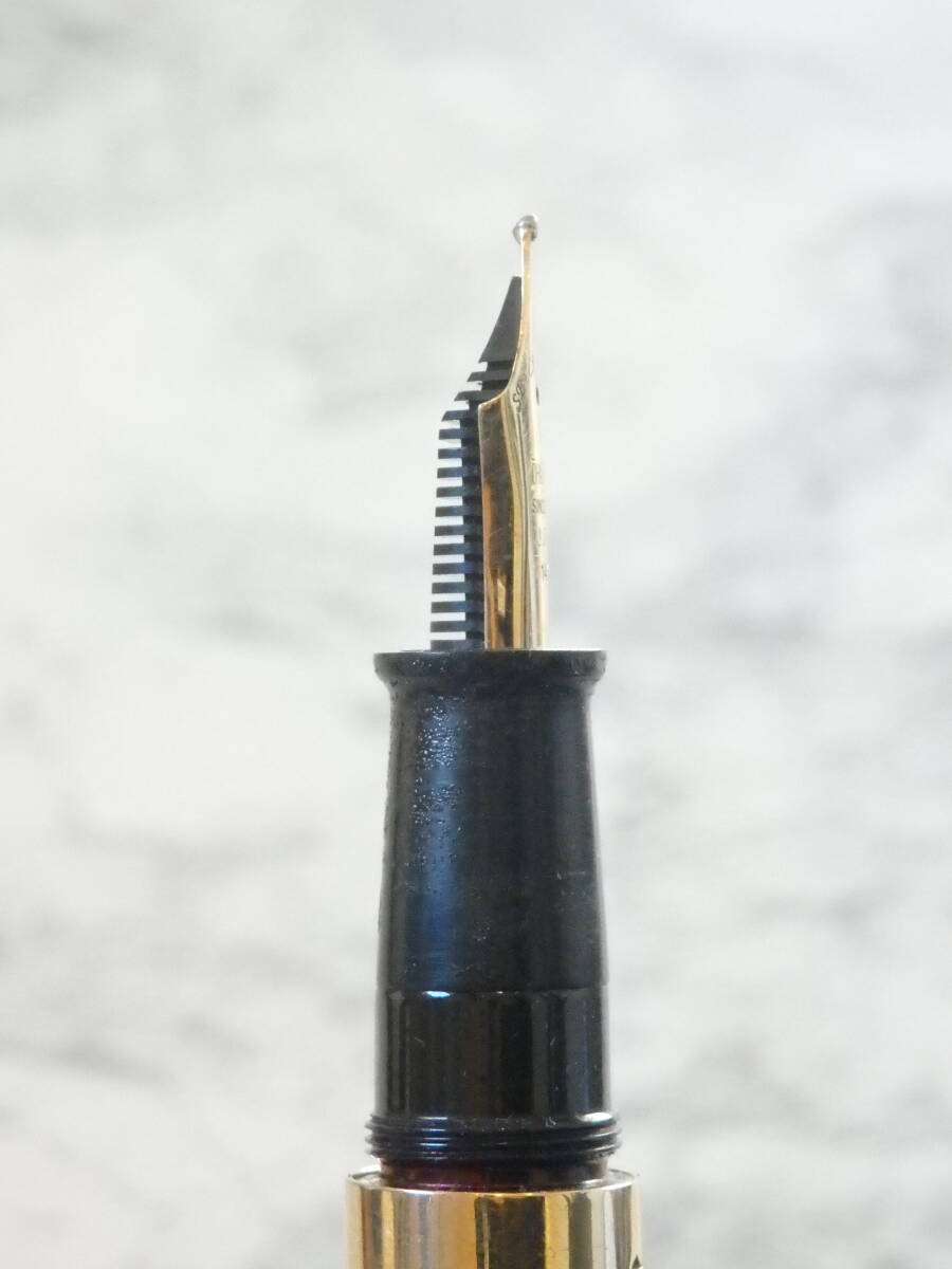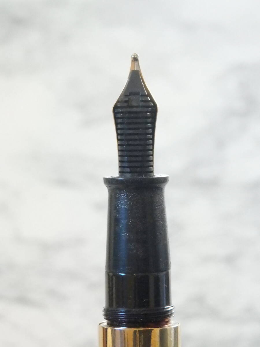 ペン先は、大型14K585ソリッドゴールドB程度のニブです。