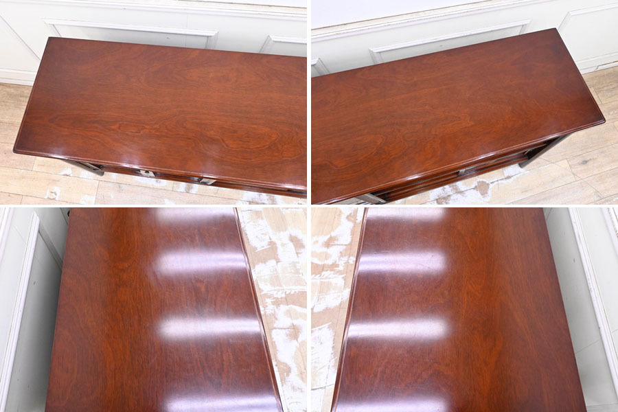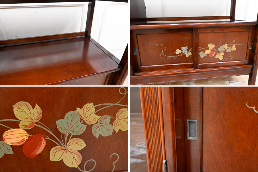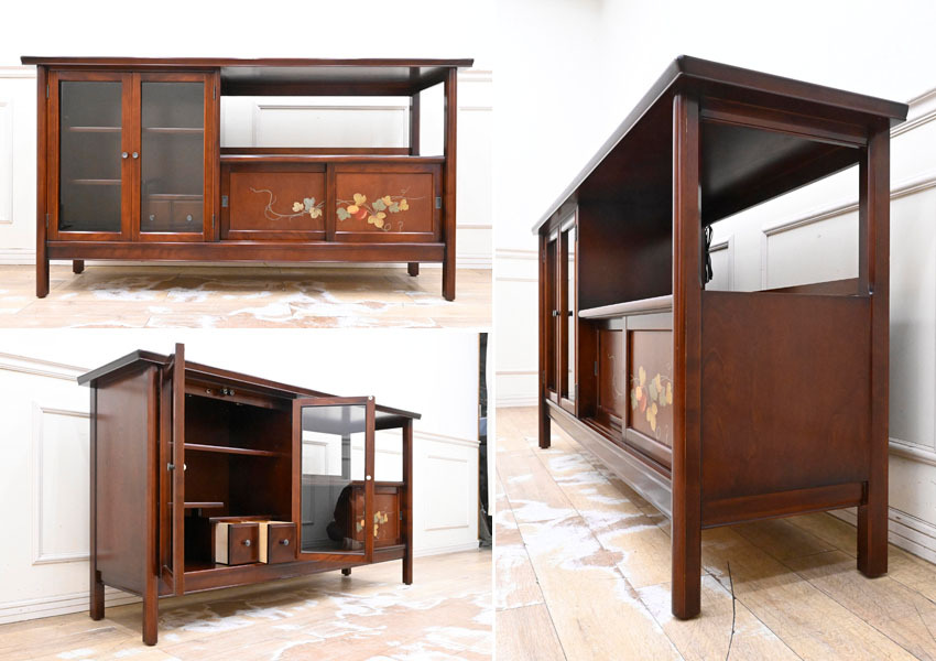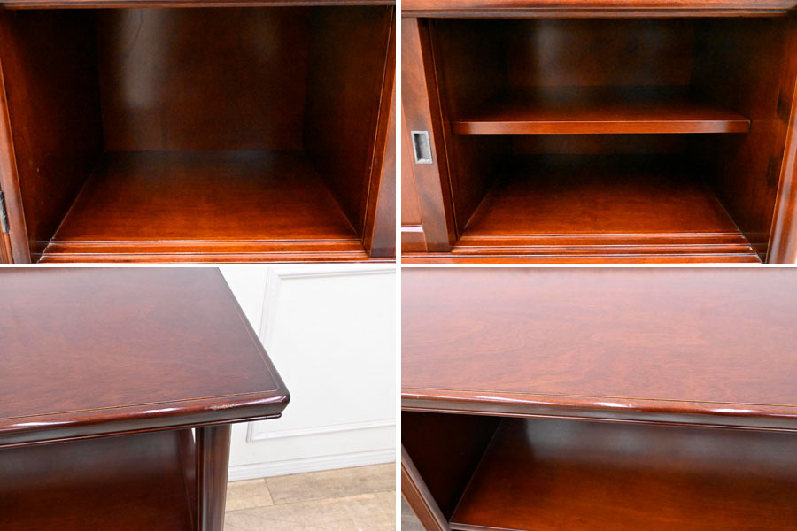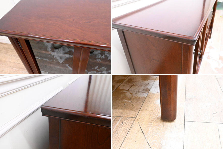 ----------------------------------------------------------------------------------------- ●送料や注意事項は必ずご確認下さい。落札後にトラブルになるケースが増えております。● ◆コンディションは写真・文章にて記載して有りますが、全てのキズの写真は掲載致しておりません。大きなダメージを除き見落とし、記載漏れが有る事はご了承下さい。 ◆当サイトにて出品する商品は多種多彩で、当方商品知識の無い物も多数ありますので落札後の質問やメンテナンス等にはお答えできません。 ◆入札された時点で、画像、文章をご理解していただいたものと判断させていただきます。不明な点は前もってQ&Aからお願い致します。入札後の質問やお電話等でのキャンセルは一切受け付け致しません。 ◆商品説明に「ノークレーム」と記載しているものに関しては、如何なる状況で届いても保証致しません。詳しくは注意事項の「商品到着後について」の最後に記載しておりますのでご確認下さい。 ---------------------------------------------------------------------------------------- 国内最高峰家具メーカー、モリシゲのサイドボード、中古品の出品です。 伝統ある香川漆芸の技法を忠実に守り、斬新でモダンなデザインを取り入れた家具を創造し続ける漆家具メーカーモリシゲは日本の中でもトップクラスの価格構成とトップクラスの品質を誇っています。 今回ご紹介するお品もモリシゲらしい独特のスタイルで、誰もが認めるお品に仕上がっています。 幅164 奥45 高88.5cm 【コンディション】 製造からか?背板に割れてる所、向かって左側面上部と脚先にガリキズ、取っ手塗装剥がれ、サビ、その他キズ、ダコン、塗装剥がれ等有ります。 | ||