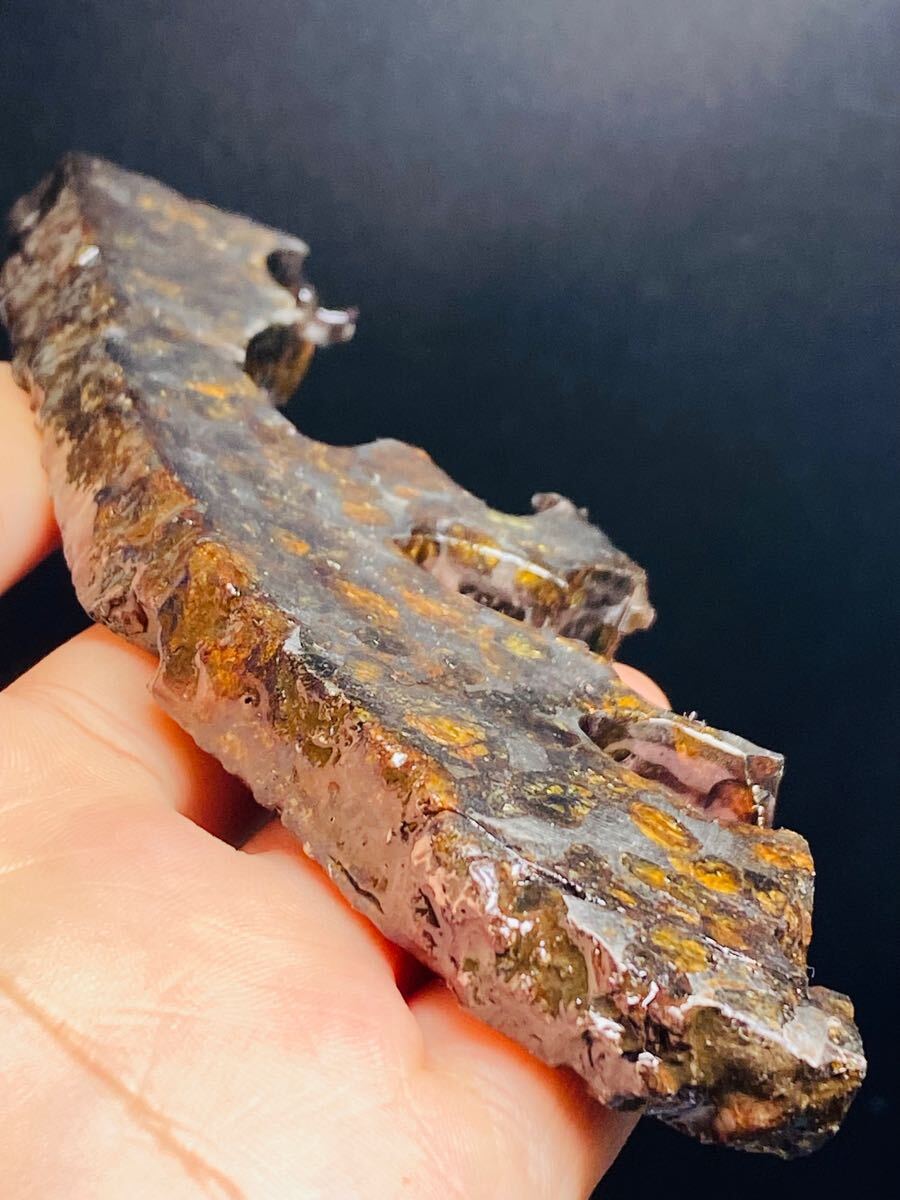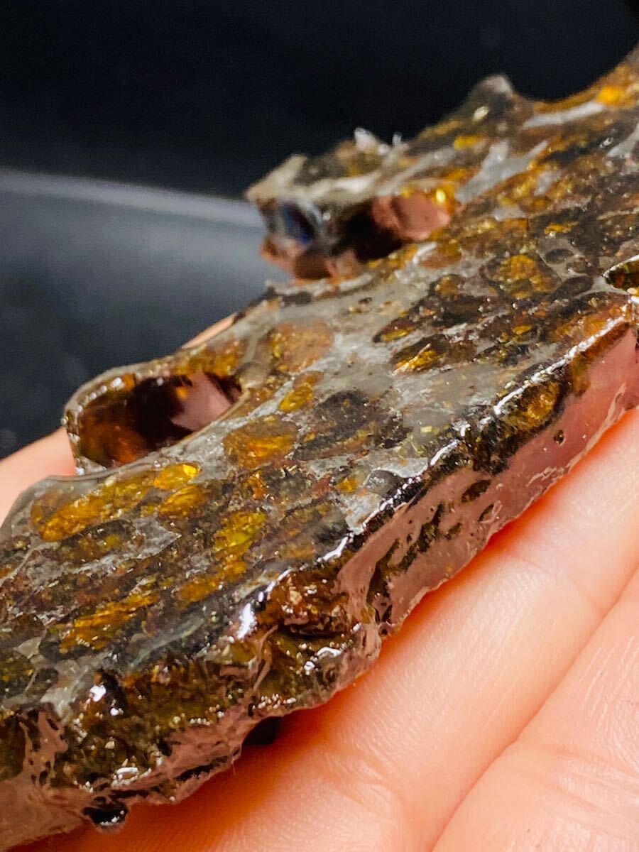 【重さ】161gパラサイト隕石の原石・樹脂コーティング済み