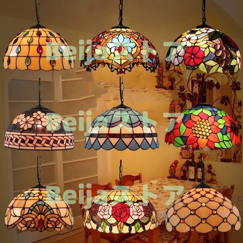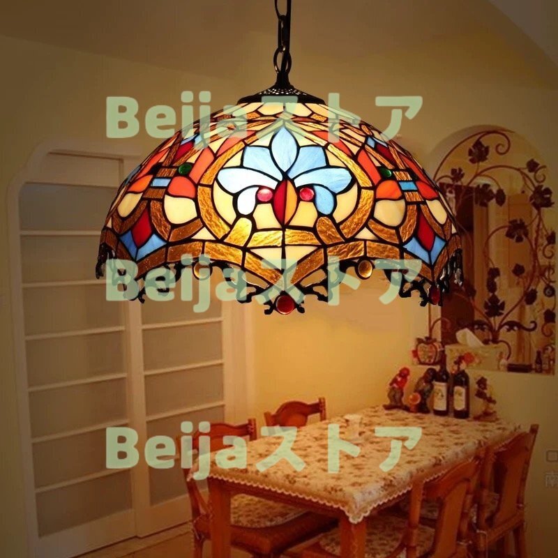 極美品★ステンドランプ ペンダントライト ステンドグラス 照明 ティファニー 花柄 通路用ランプ 装飾品 ベッドルーム用