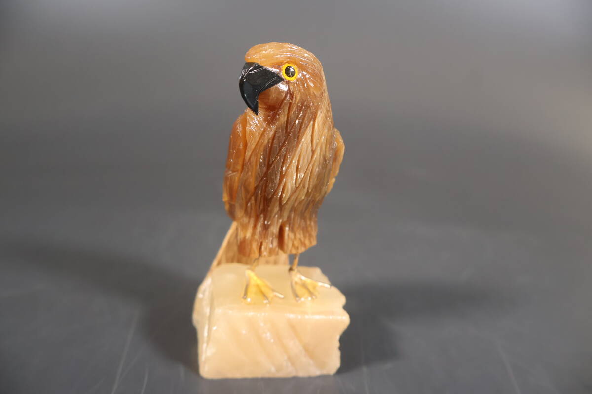 【和】(A1348) 時代古作 石彫鳥置物 彫刻 宝石 玉石