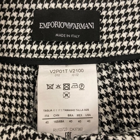 エンポリオアルマーニ EMPORIO ARMANI テーパードパンツ 千鳥格子柄 センタープレス V2P01T V2100 40 黒 ブラック 白 ホワイト レディース