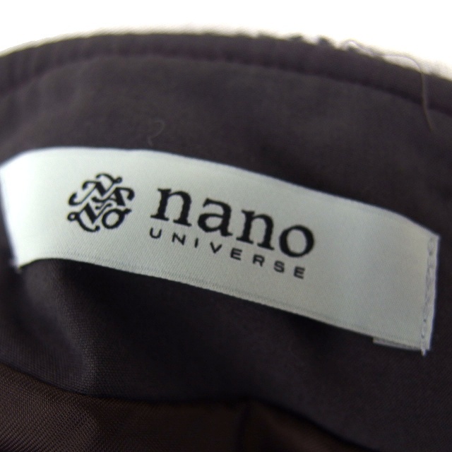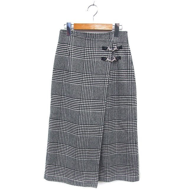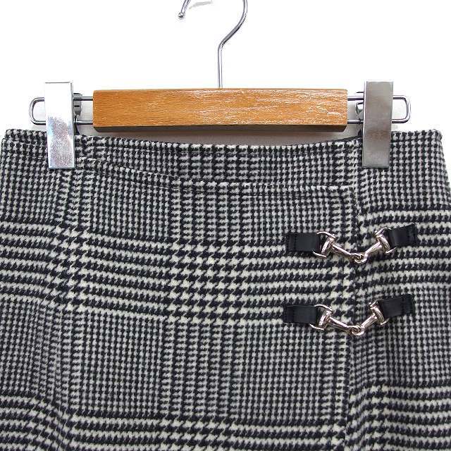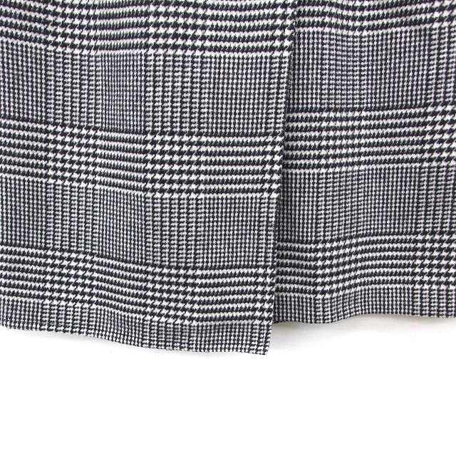 ナノユニバース nano universe フレア ロングスカート マキシ丈 ウール混 グレンチェック スリット フェイクレザー 36 黒 ブラック