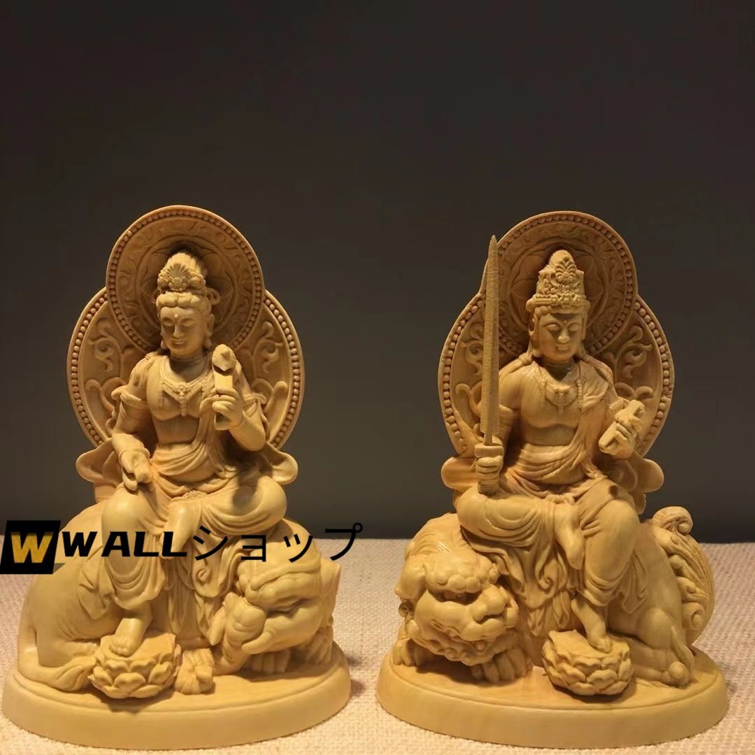 文殊菩薩 普賢菩薩 木彫り 仏像 文殊菩薩像 普賢菩薩像 座像 仏教美術 置物 木彫 仏像 黄楊木