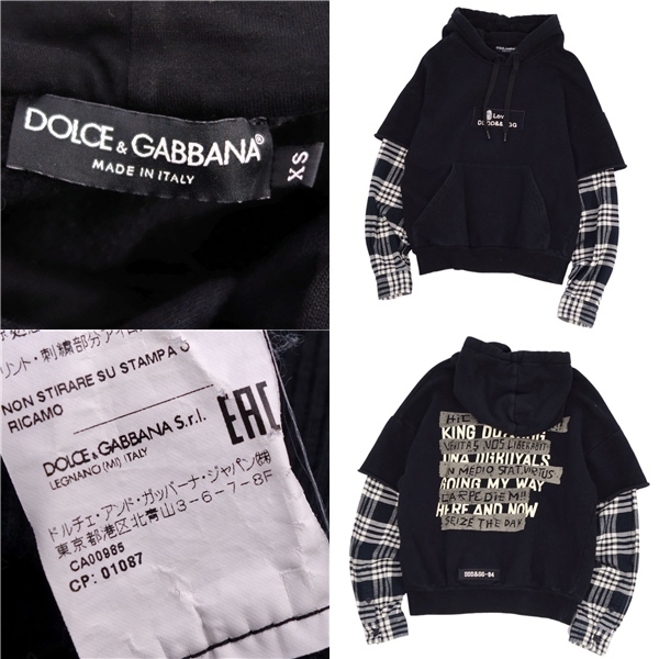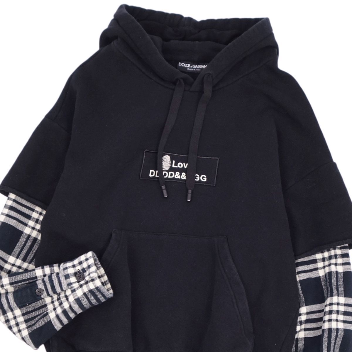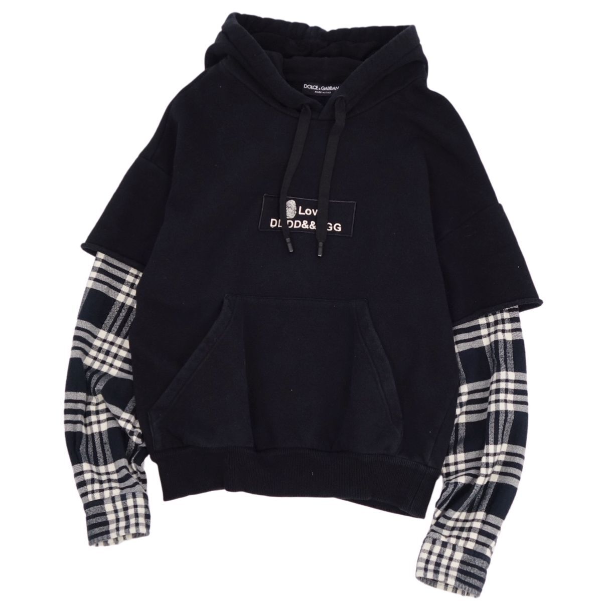 | 美品 ドルチェ&ガッバーナ DOLCE&GABBANA パーカー フーディ プルオーバー ロゴ刺繍 切り替え コットン メンズ XS 黒 |