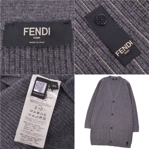 | 極美品 フェンディ FENDI ニット ロング カーディガン ボールチェーン カシミヤ100% トップス メンズ 50(L相当) グレー |