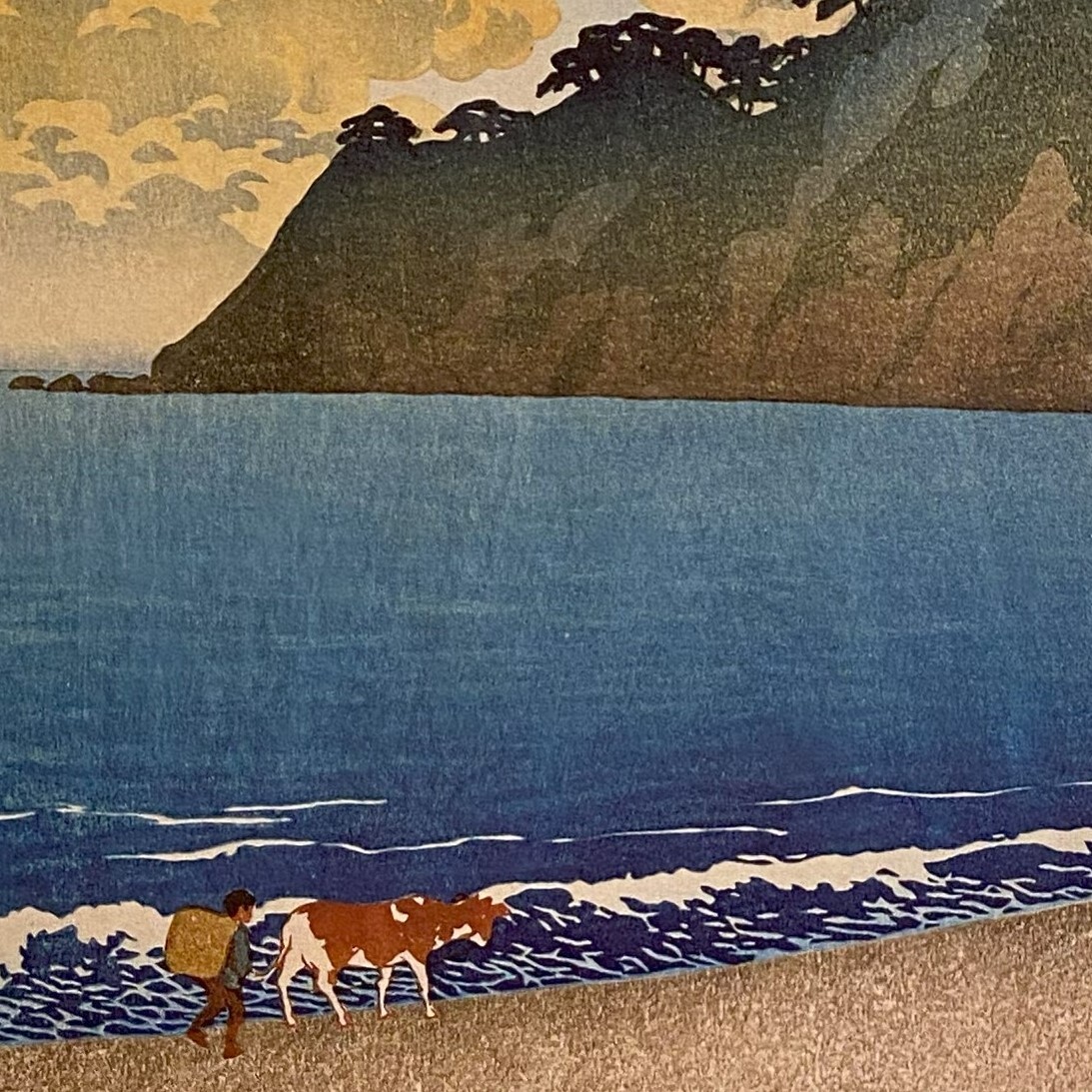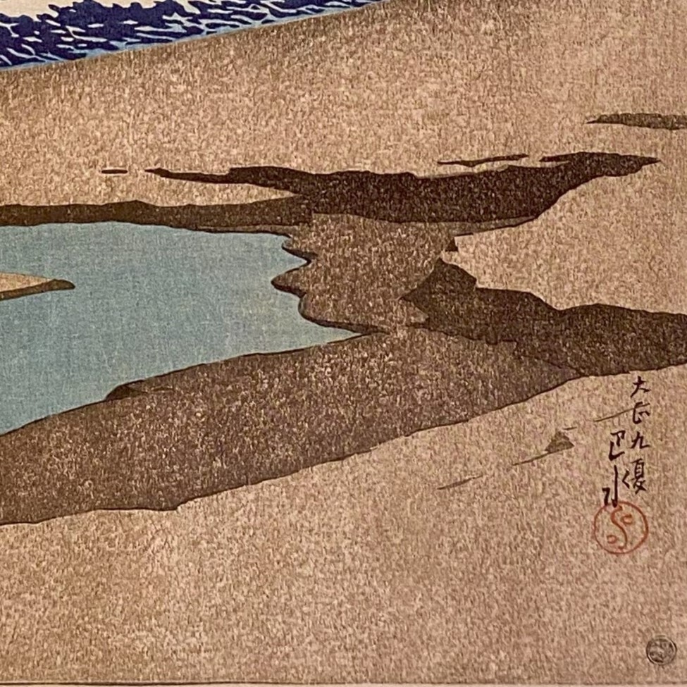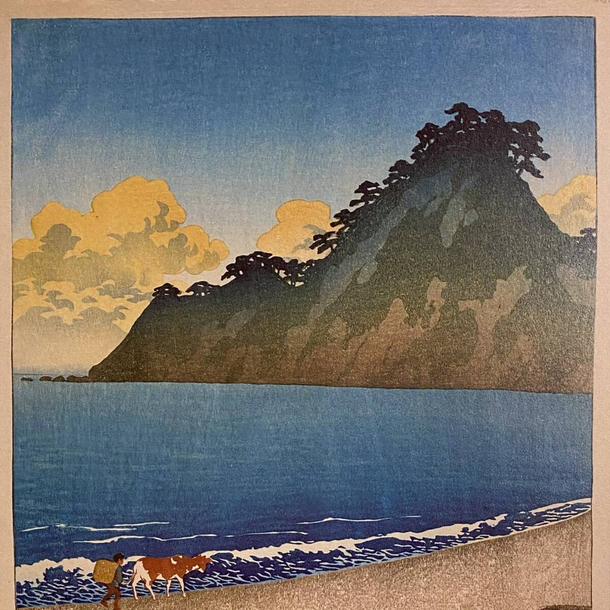 川瀬巴水、〈房州岩井の浜 旅みやげ第一集〉、希少画集画、高級新品額・額装付、状態良好、送料込み