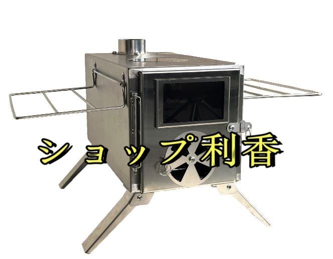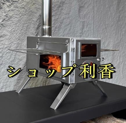 薪 ストーブ アウトドア 調理器具 暖炉 キャンプ 折りたたみ テント 煙突付き 3面の耐熱ガラス窓 組立式 焚き火台 (シルバー/ステンレス製)