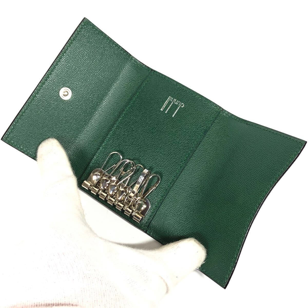 未使用品【ダンヒル】基準内 dunhill キーケース 6連フック 茶×グリーン色系 キーリング付き エナメルレザー 男性用 メンズ イタリア製 箱