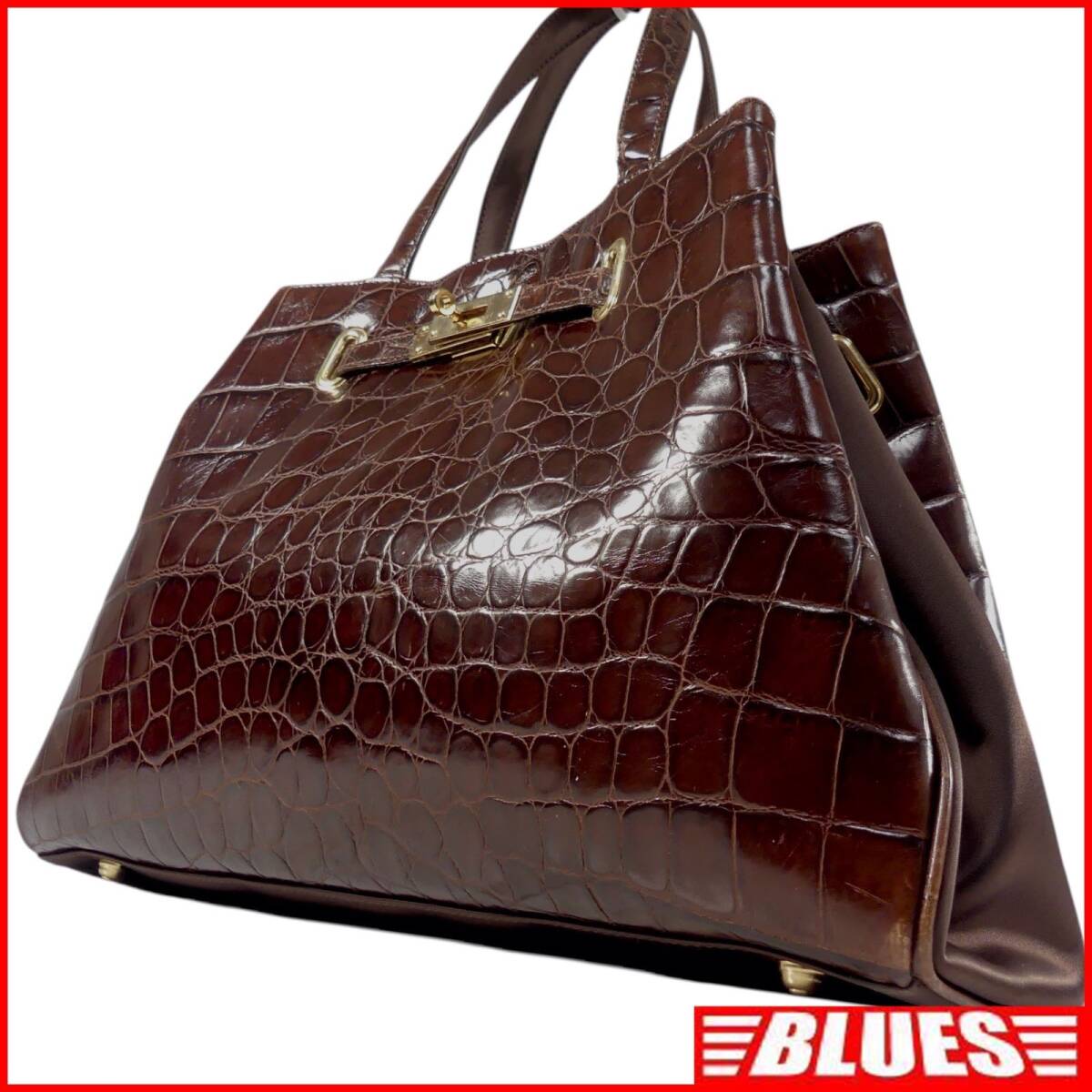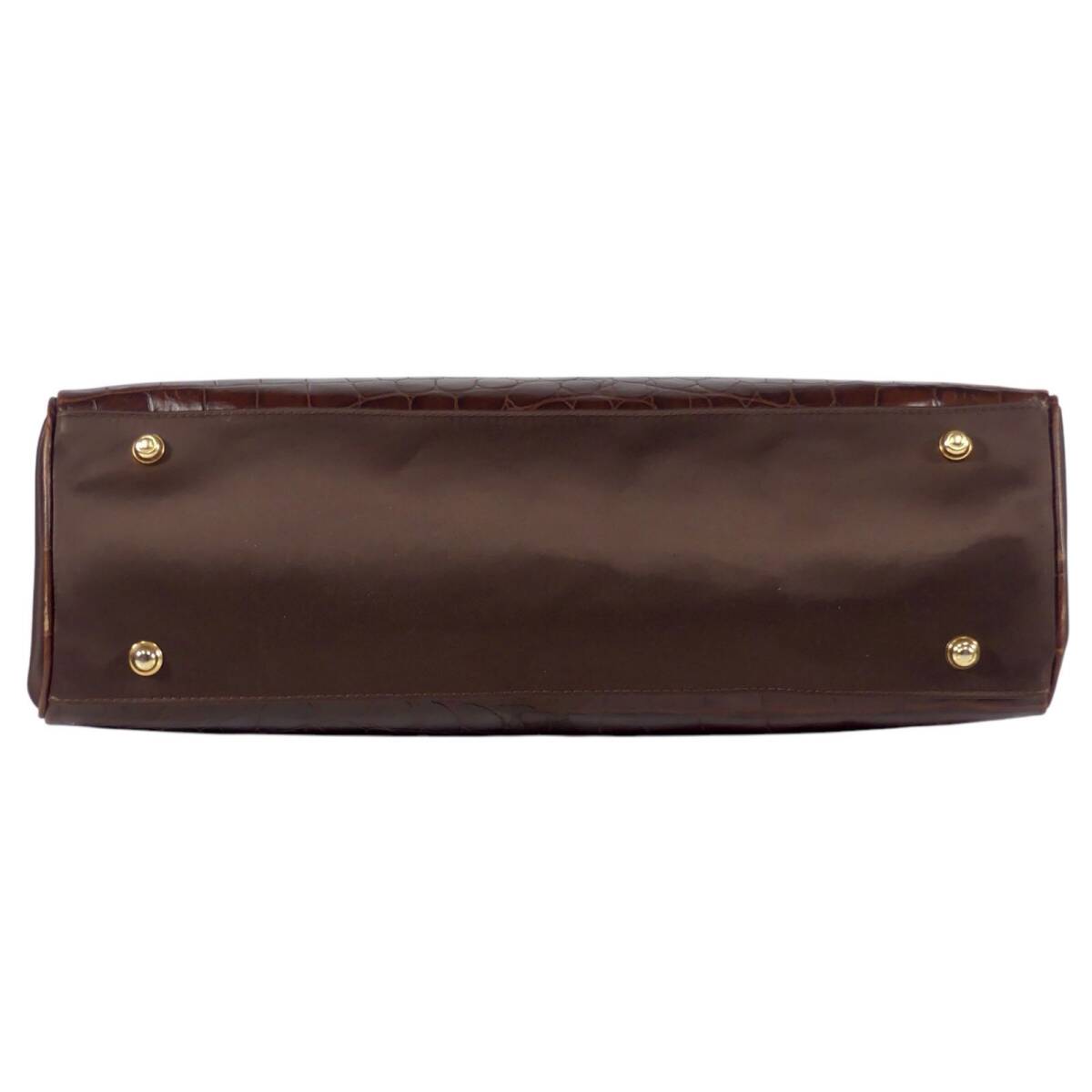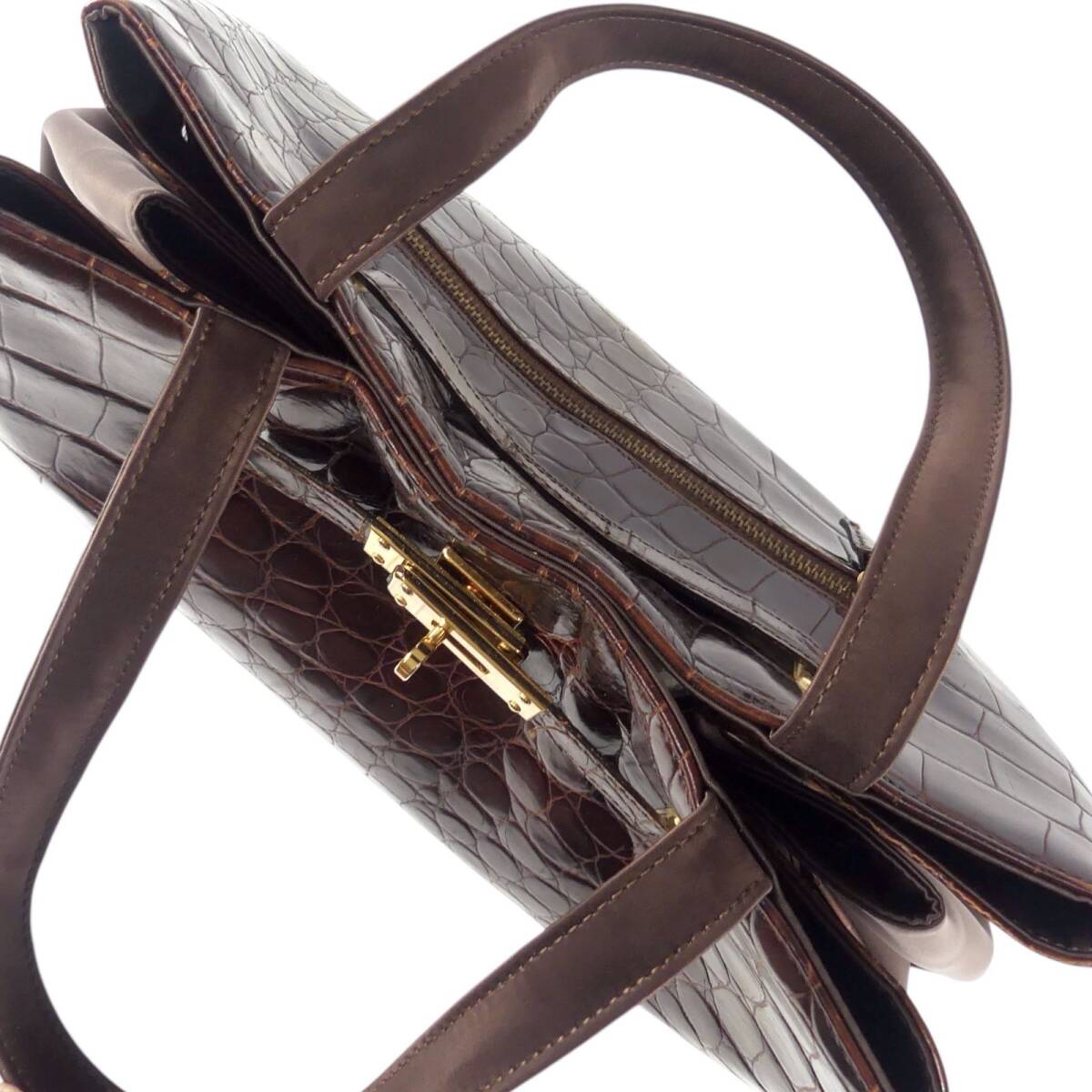 即決★N.B.★オールレザーハンドバッグ 茶 クロコ型押し 本革 手提げバッグ 本皮 ショルダー 旅行 カバン 出張 鞄