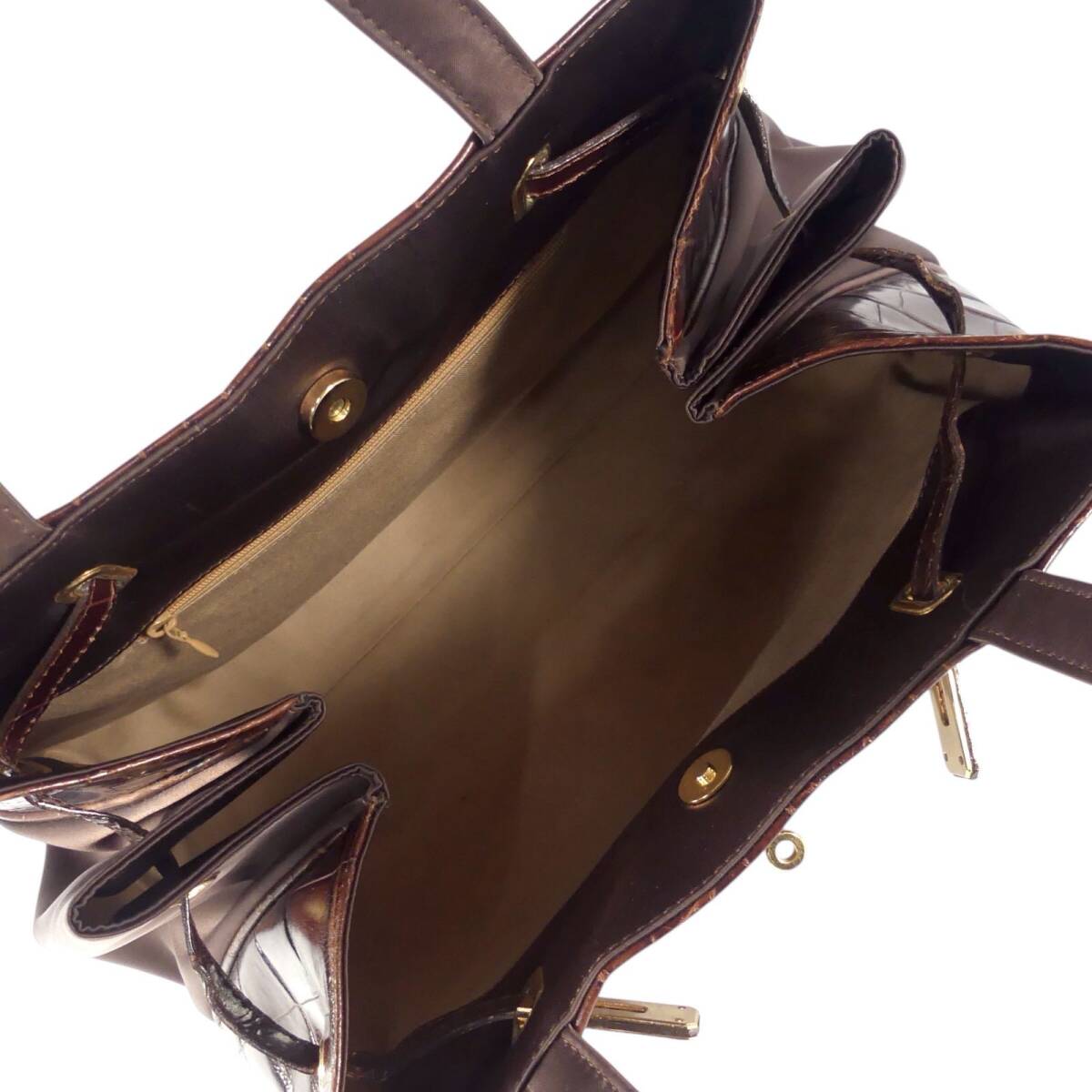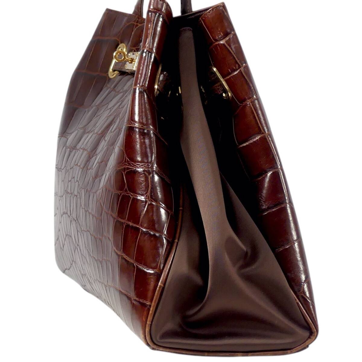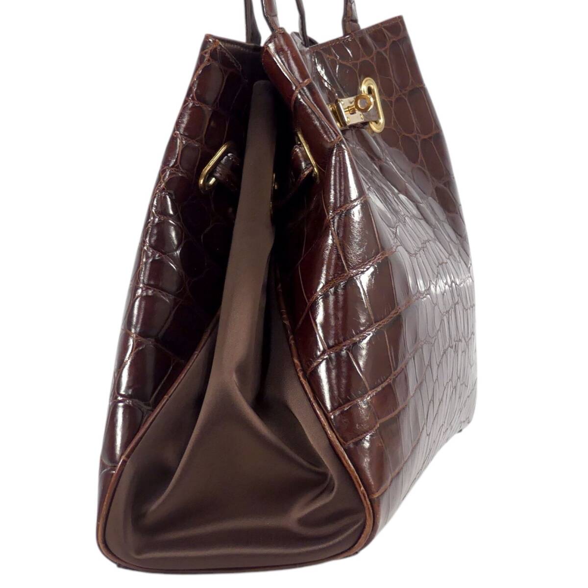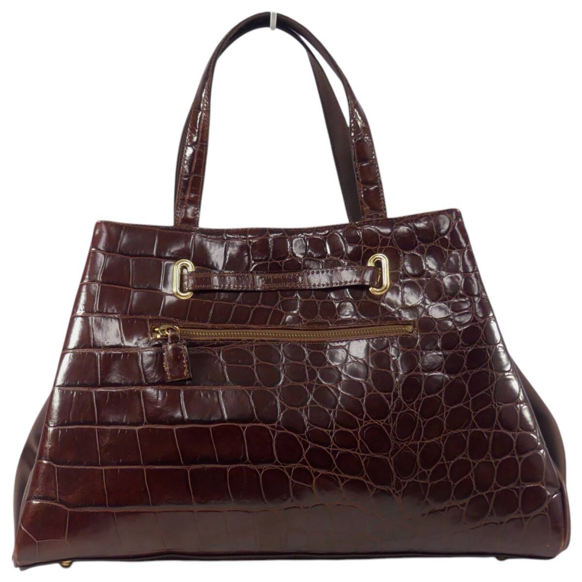即決★N.B.★オールレザーハンドバッグ 茶 クロコ型押し 本革 手提げバッグ 本皮 ショルダー 旅行 カバン 出張 鞄