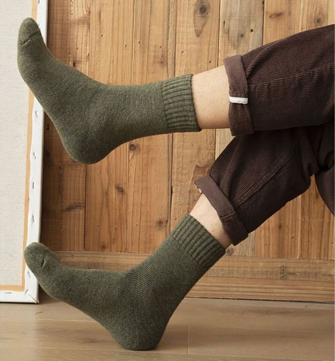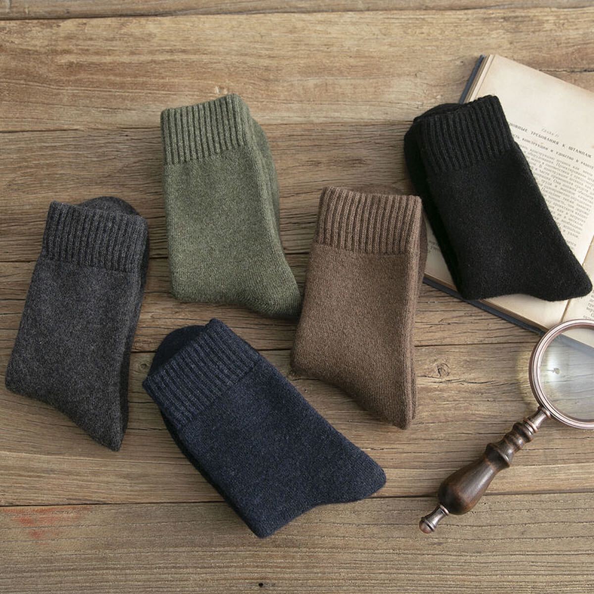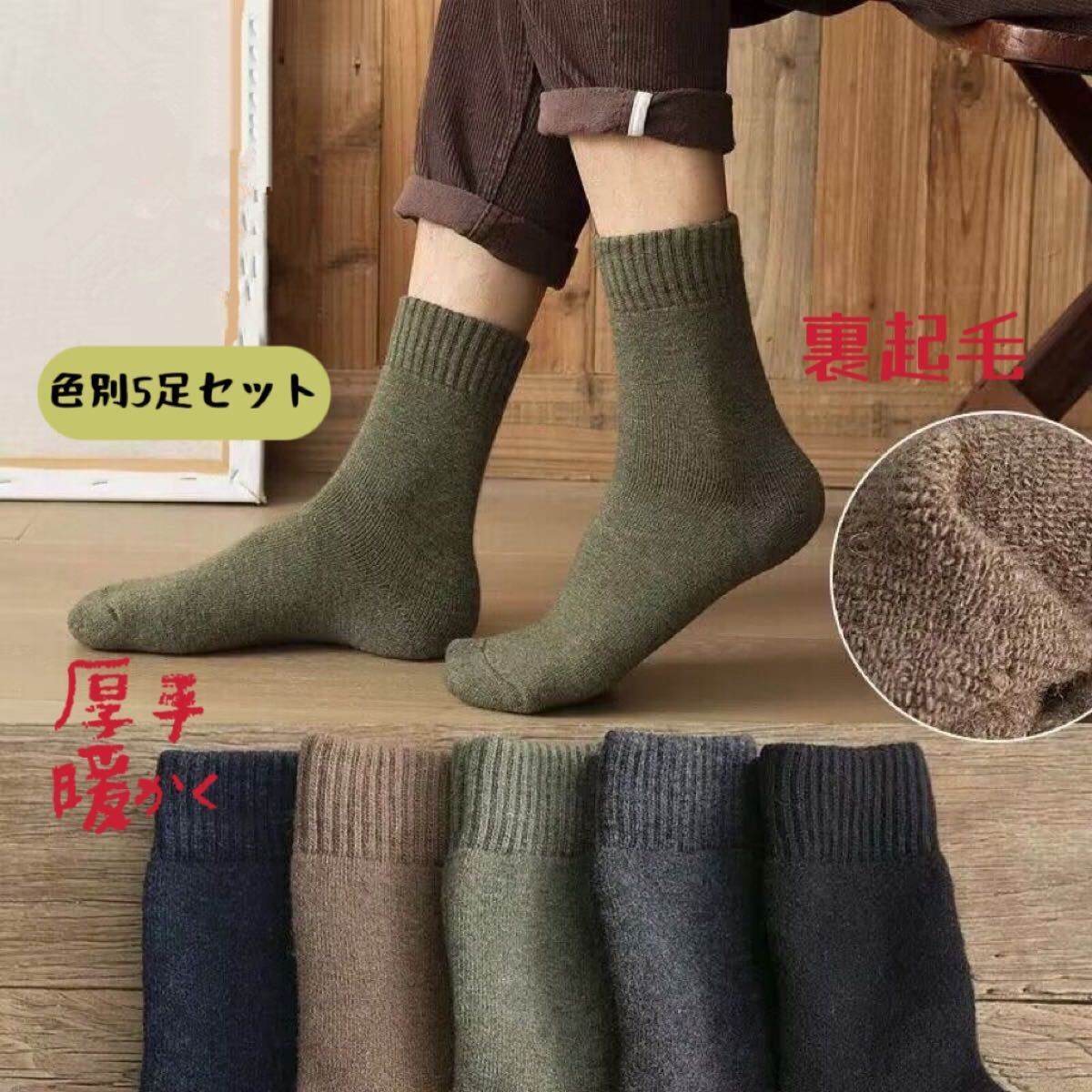 紳士靴下 ビジネス無地メンズソックス5足セット 冬ウール混 暖かい 厚手裏パイル スニーカークルー丈男性靴下 まとめ売り ビジネス