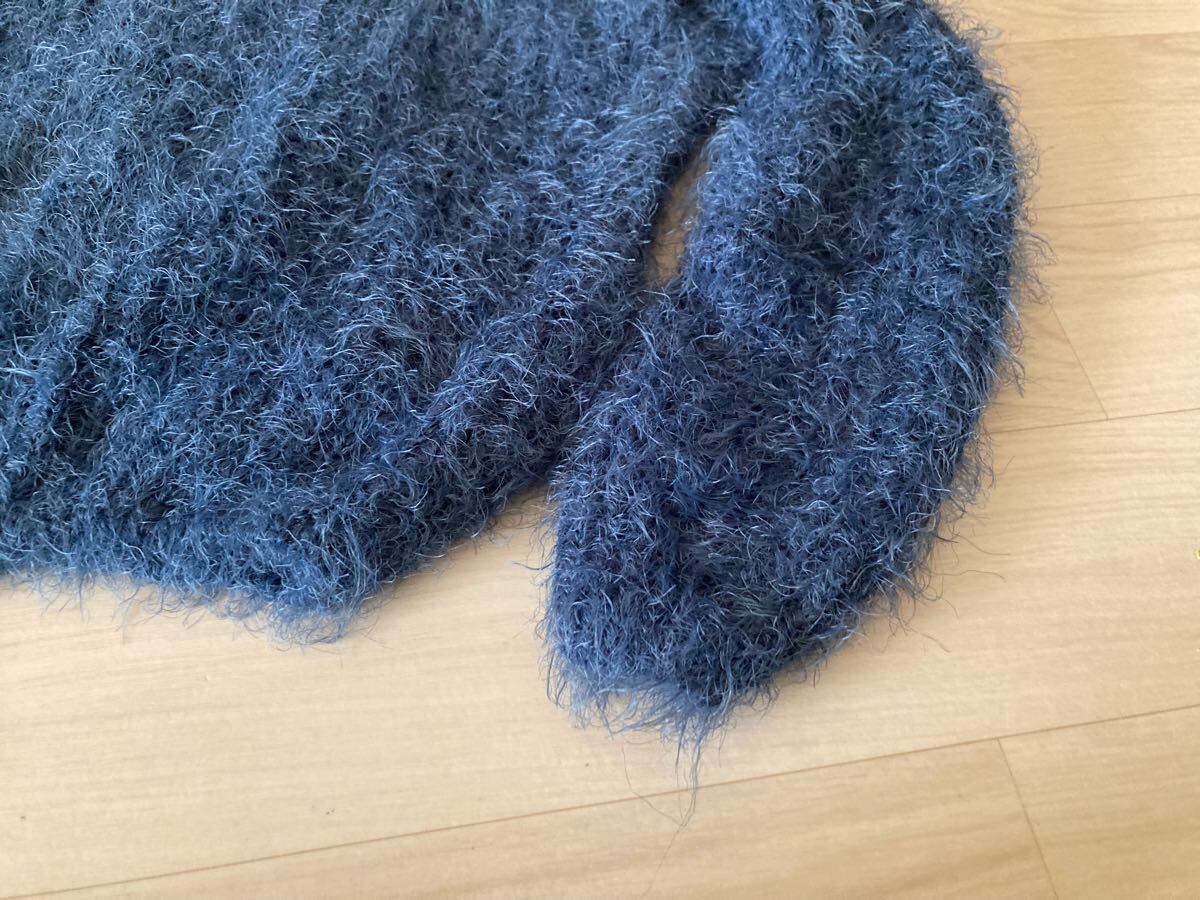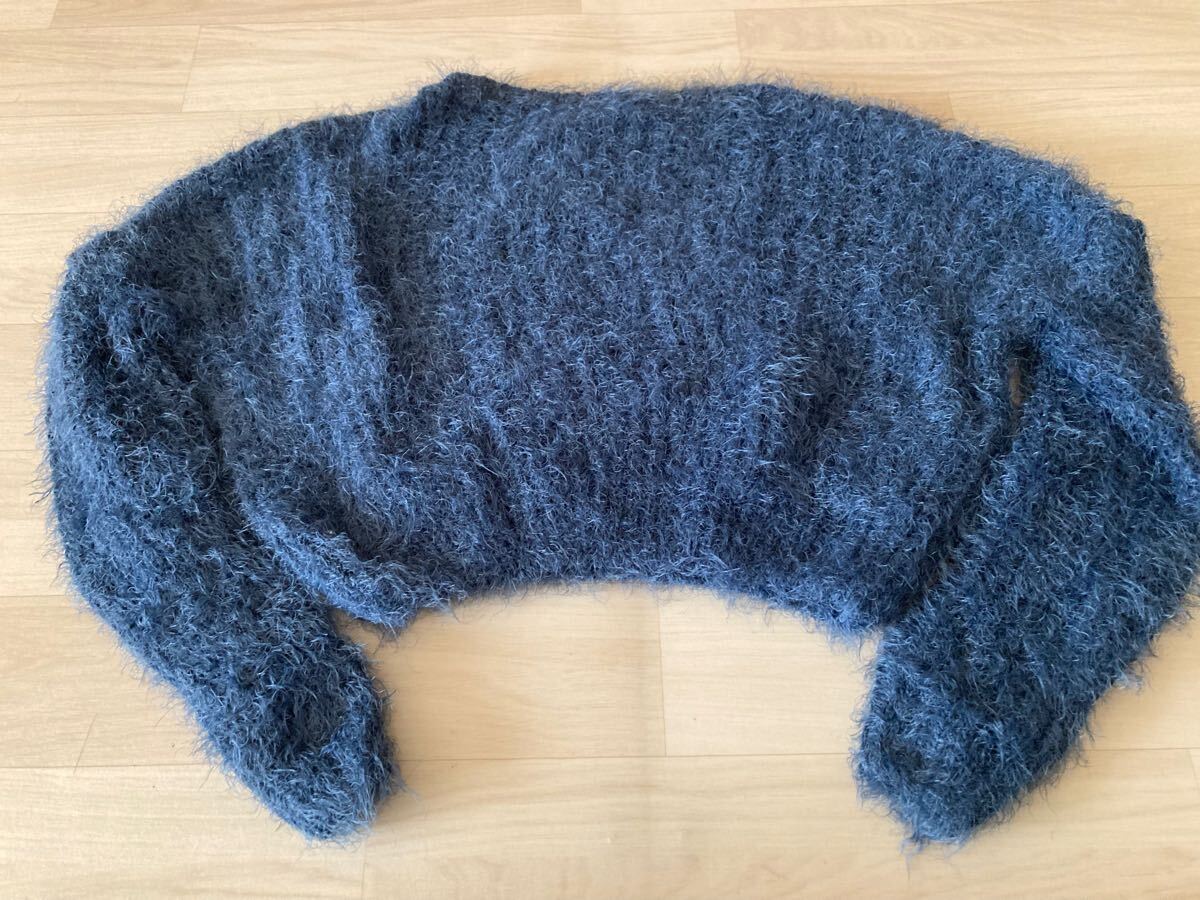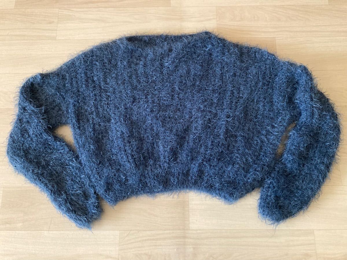アイスー ISOOKダークブルーのファンシーヤーンを使用したクロップド丈の長袖ニット。