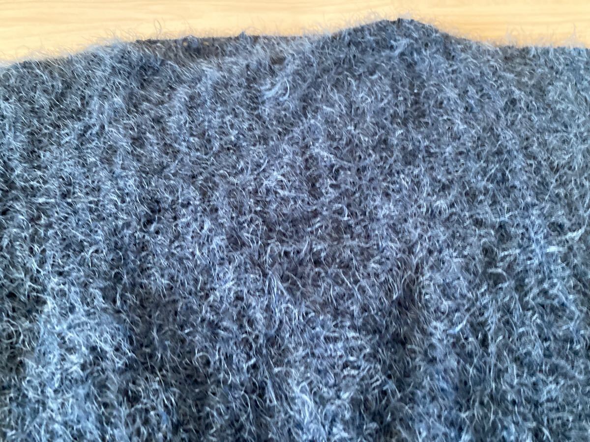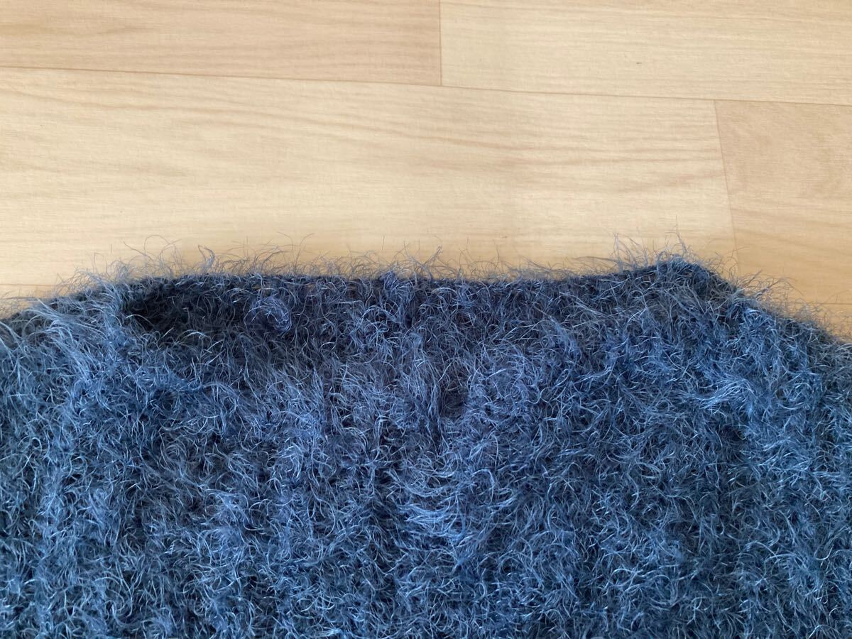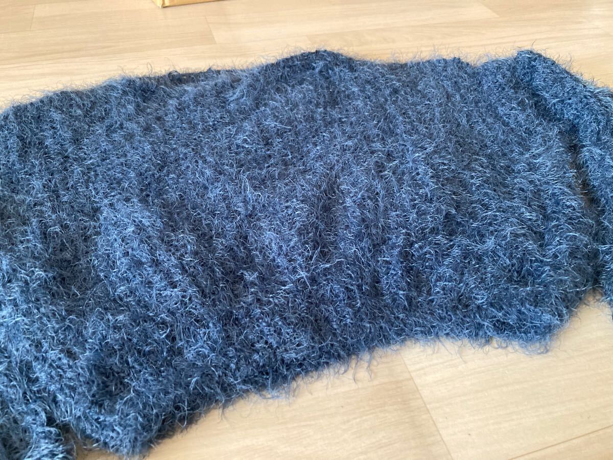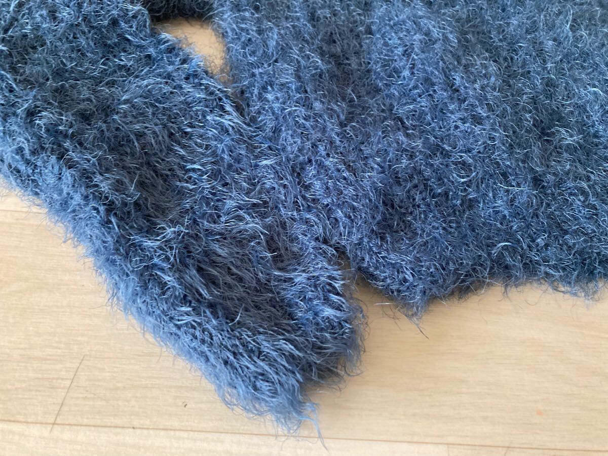 アイスー ISOOKダークブルーのファンシーヤーンを使用したクロップド丈の長袖ニット。