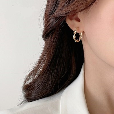 ピアス ゴールド ツイスト サークル 韓国 クロス 織り 金属 幾何 レディース 女の子 アクセサリー パーティー レトロ ジュエリー A